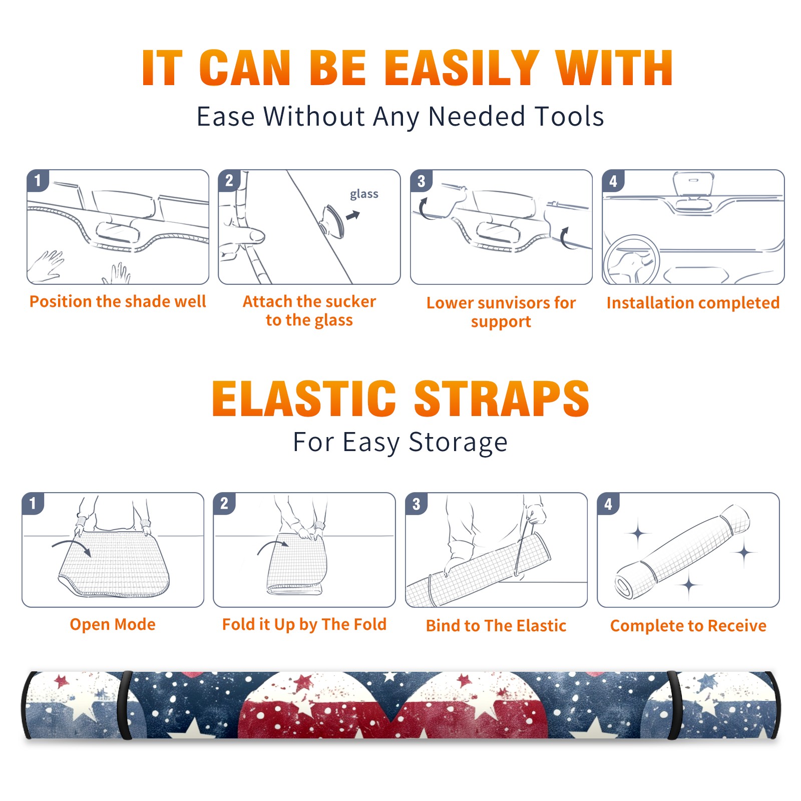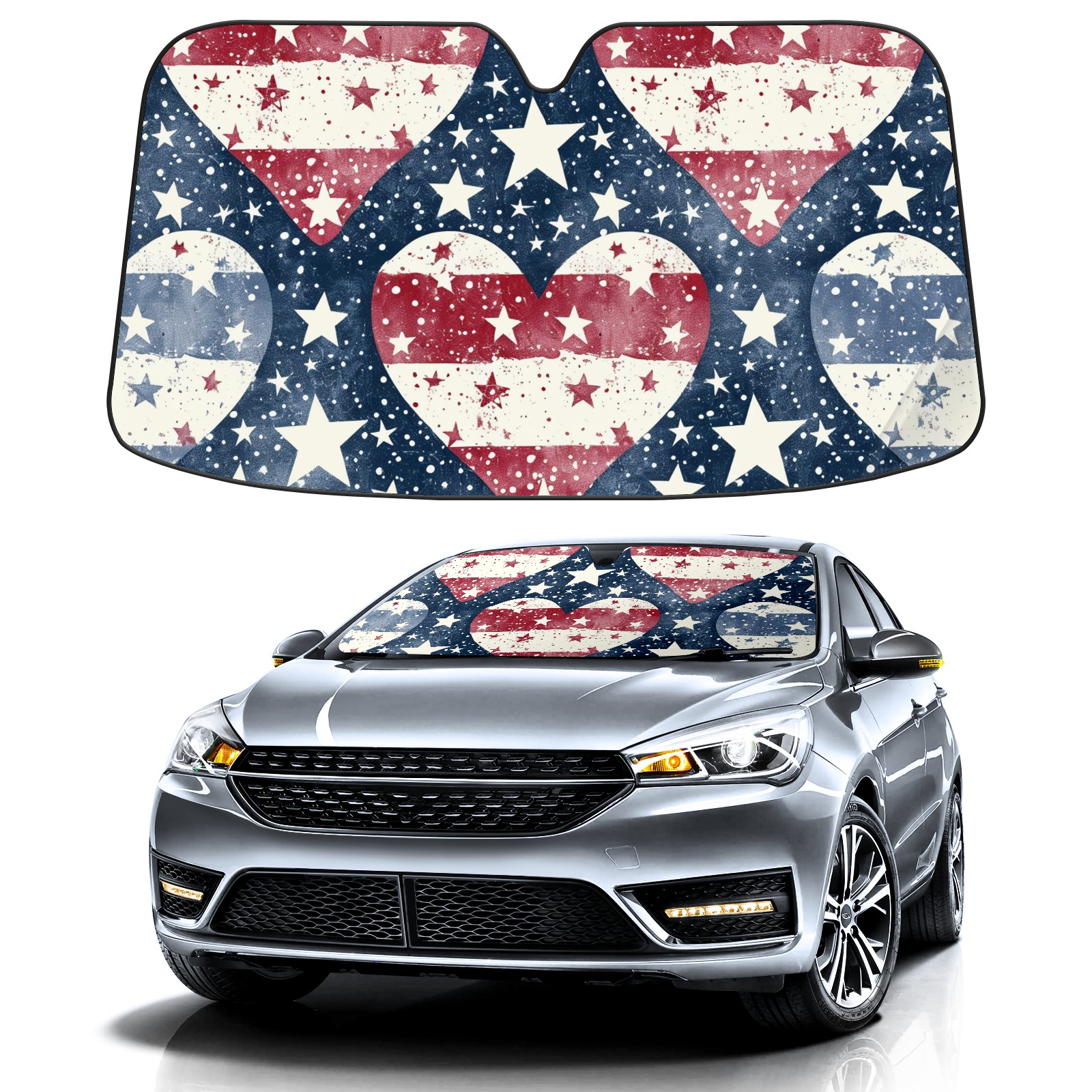 Car Windshield Sun Shade for Front Window USA National Flag Foldable Vehicle Windshield Car Sun Visor Covers Automotive Window Protector Car Camping Privacy Sun Blocker