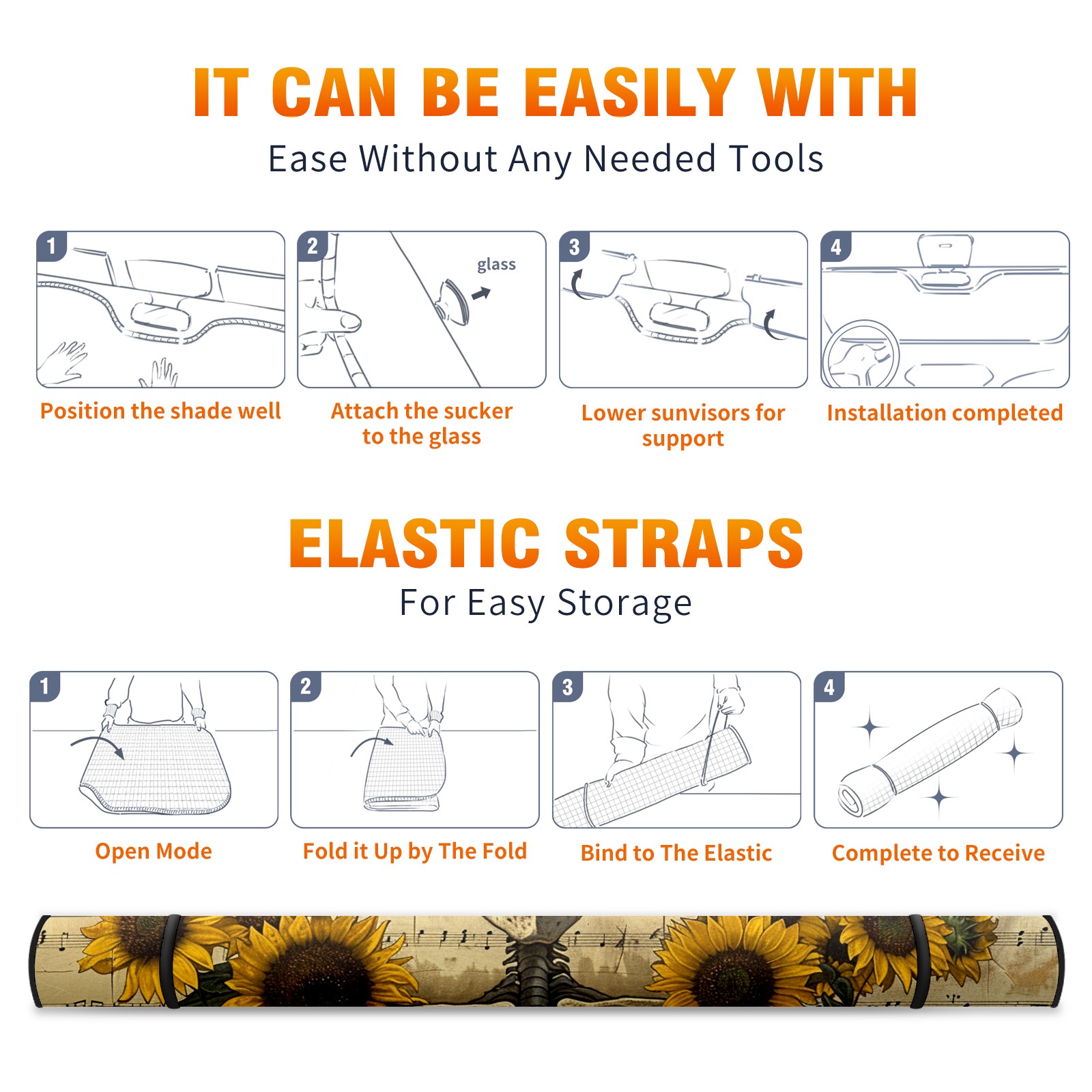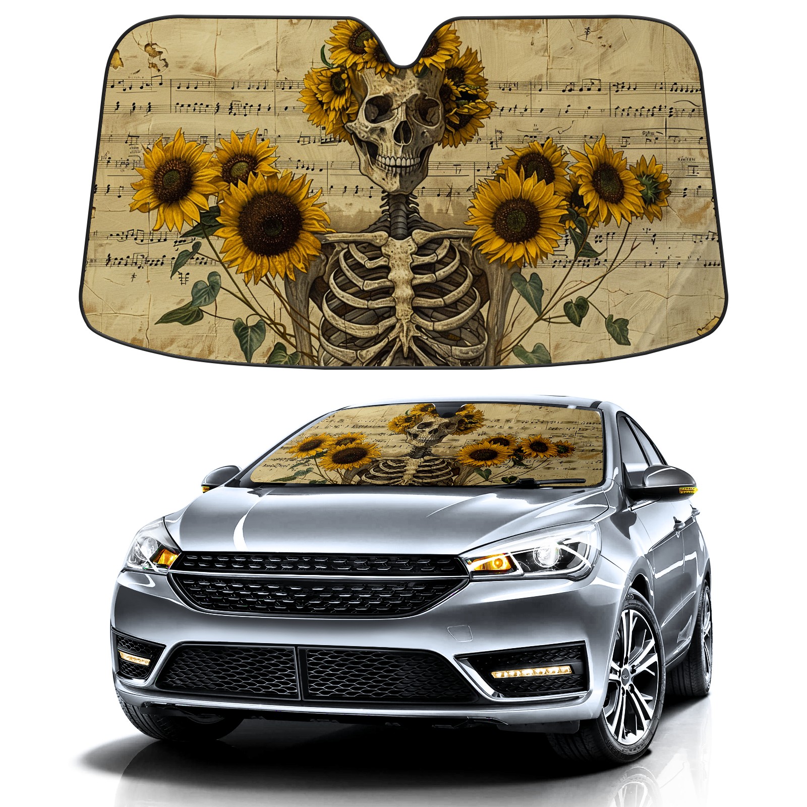 Car Windshield Sun Shade for Front Window Skull Sunflower Foldable Vehicle Windshield Car Sun Visor Covers Automotive Window Protector Car Camping Privacy Sun Blocker