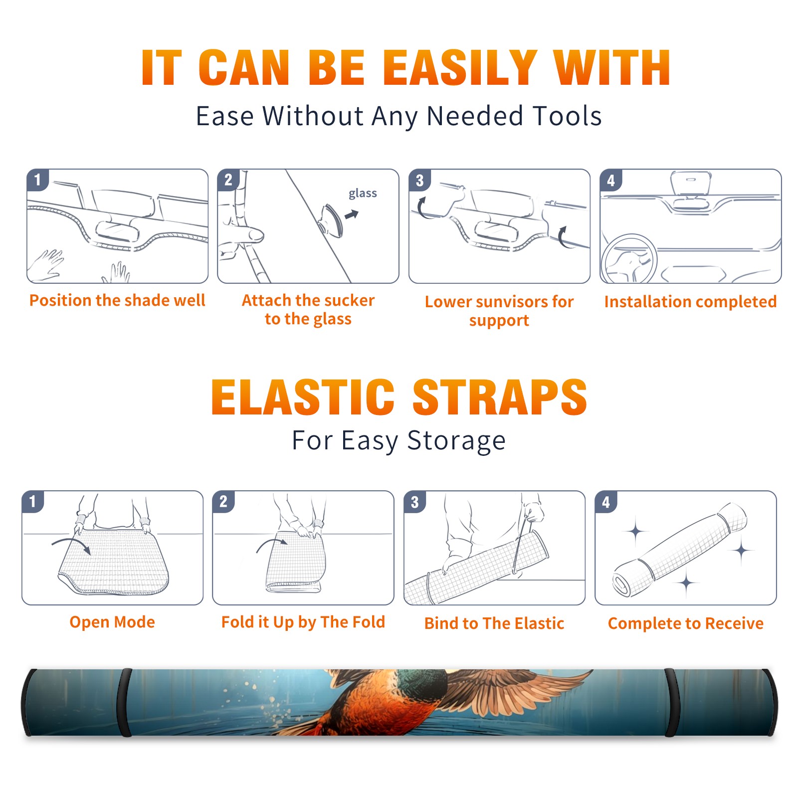Car Windshield Sun Shade for Front Window Bird Flying Foldable Vehicle Windshield Car Sun Visor Covers Automotive Window Protector Car Camping Privacy Sun Blocker