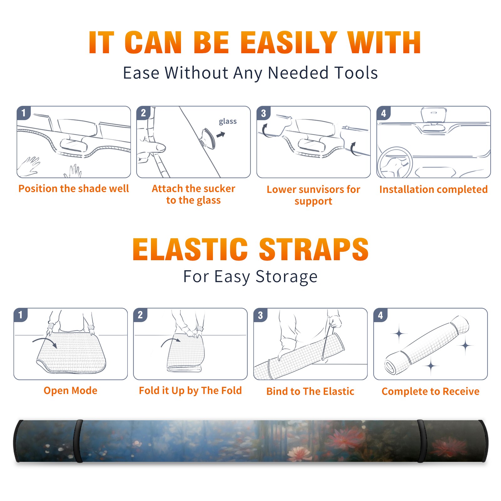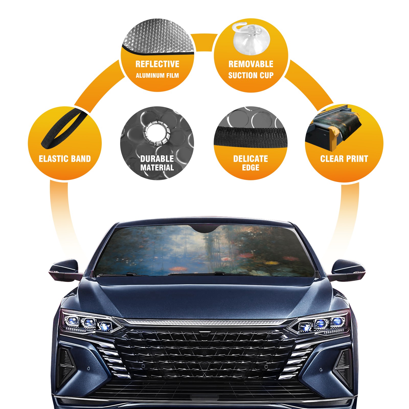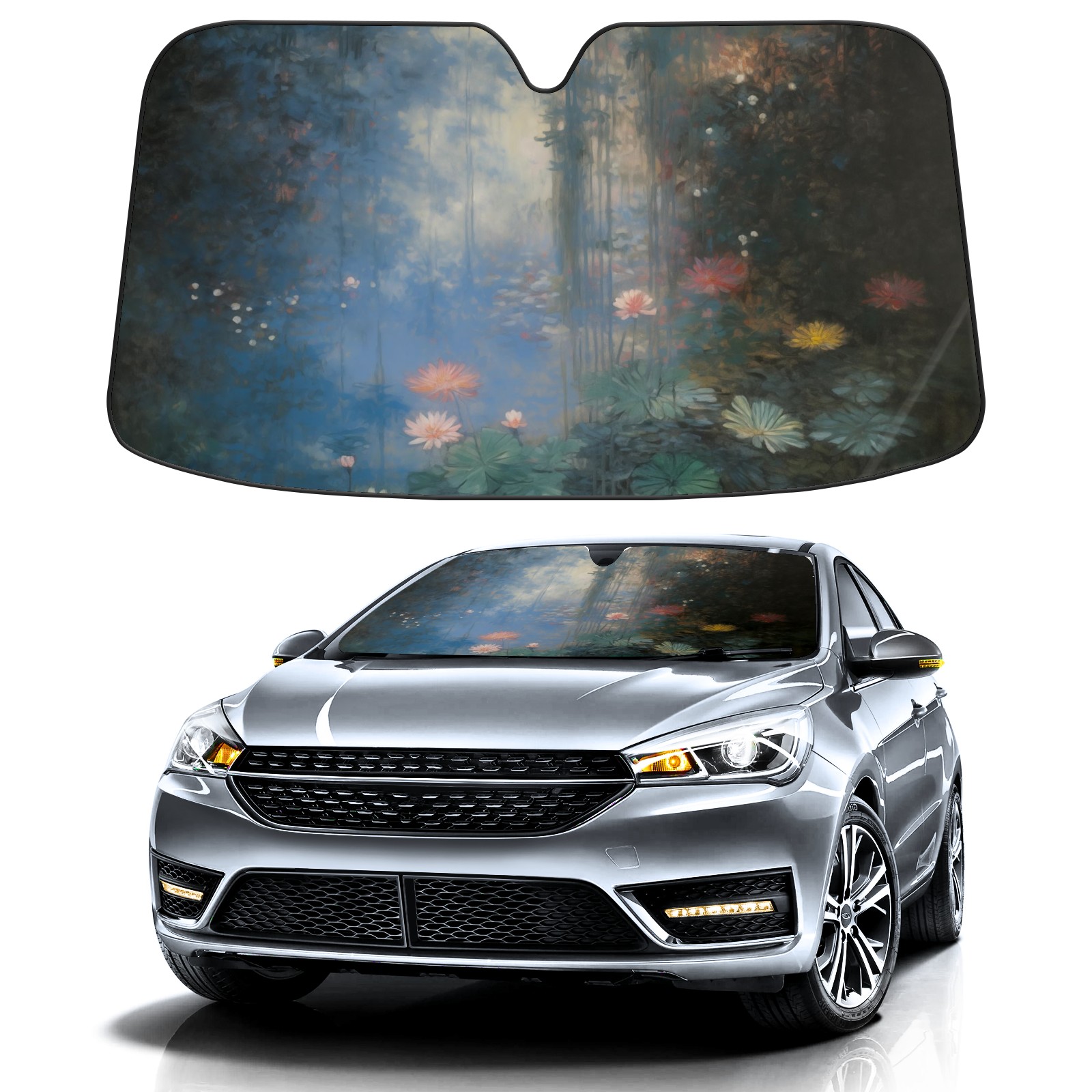 Car Windshield Sun Shade for Front Window Water Lily Lotus Flower Foldable Vehicle Windshield Car Sun Visor Covers Automotive Window Protector Car Camping Privacy Sun Blocker