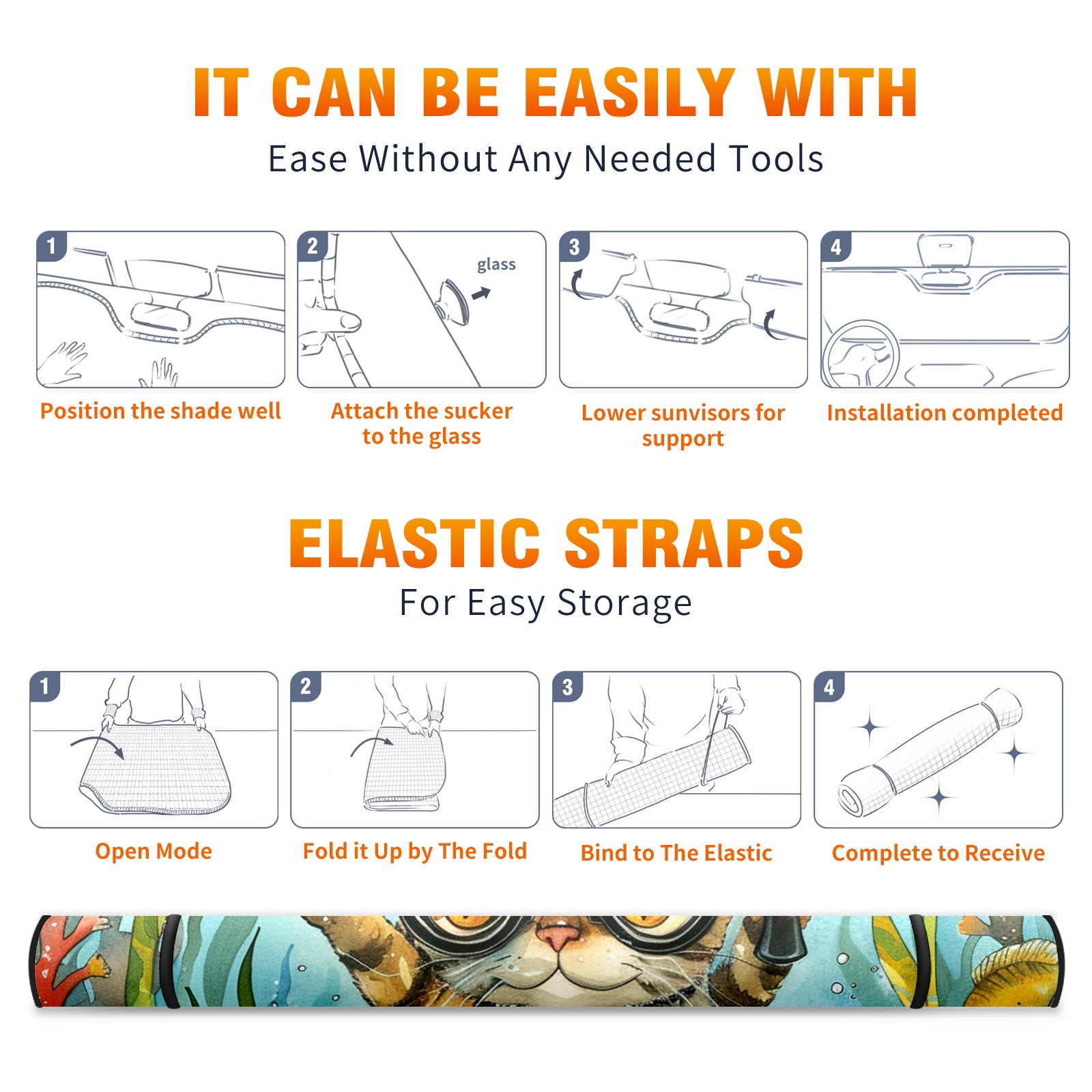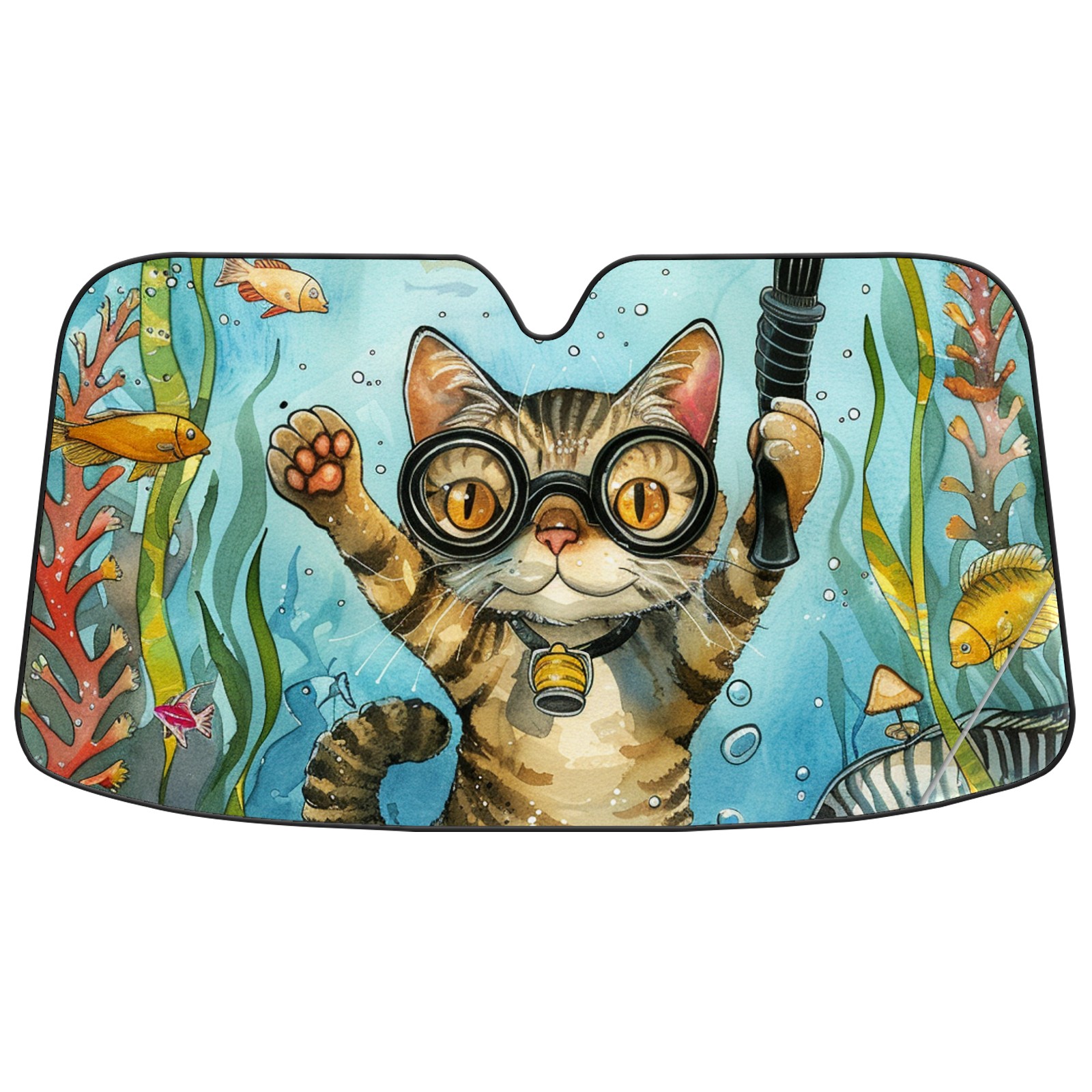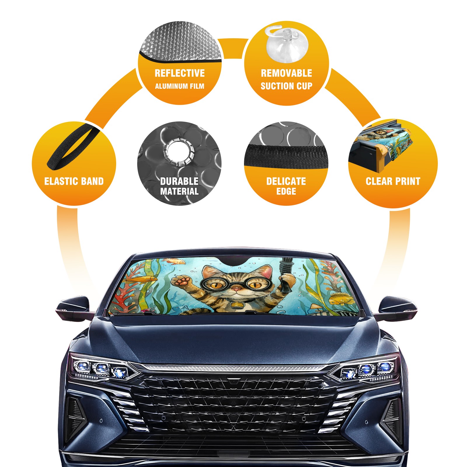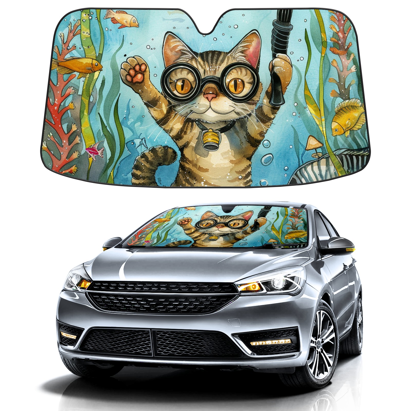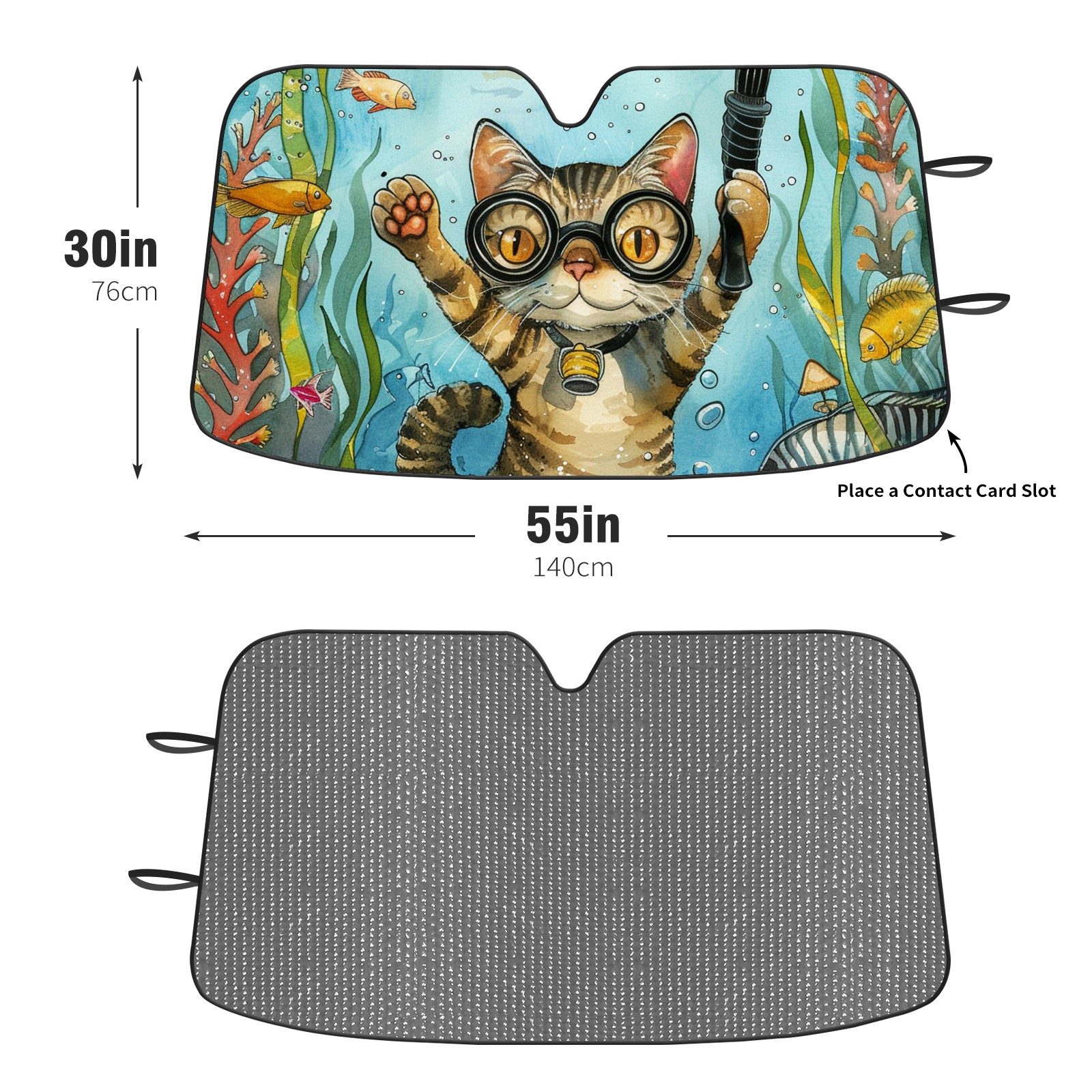 Car Windshield Sun Shade for Front Window Diving Cat Foldable Vehicle Windshield Car Sun Visor Covers Automotive Window Protector Car Camping Privacy Sun Blocker