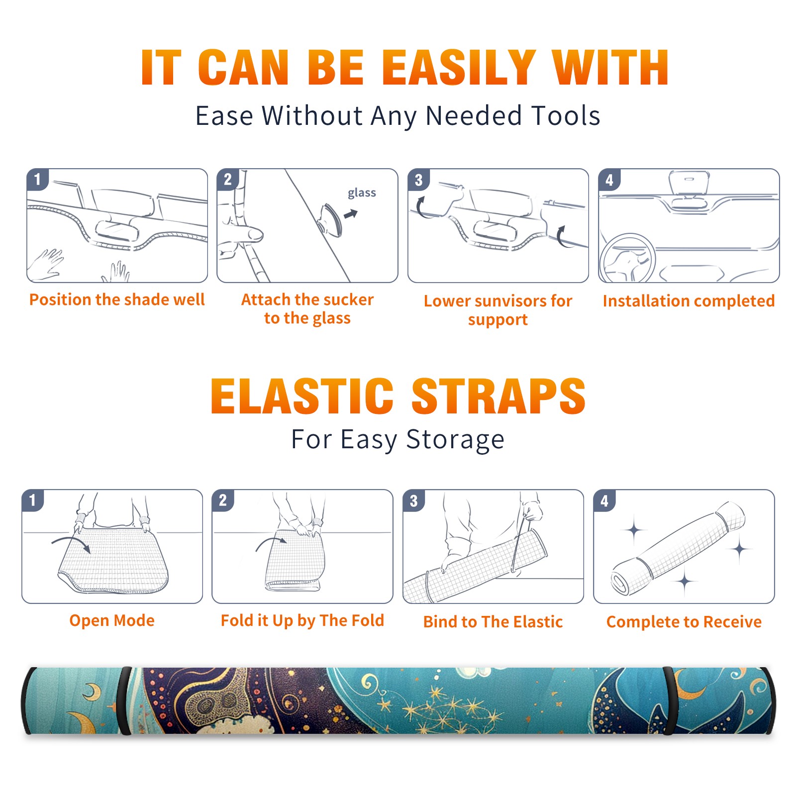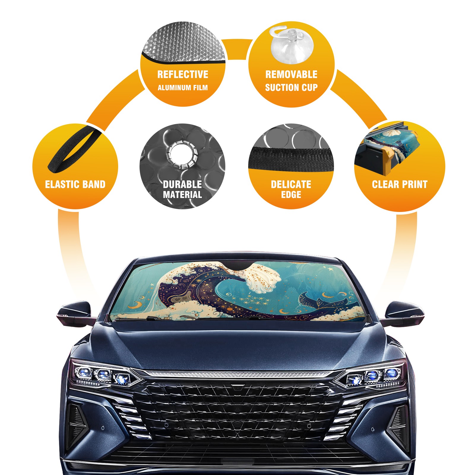 • Diameter /Size 63"L x 33.5"W</b><br> Made from excellent materials which makes it sturdy and protects the car from the sun. Easy to use and pack. Makes the interior of the car cooler.You can easily stash the sunshade in the storage bag or store long term.It open and closes easy. Also the leather storage bag is durable and easy to put the umbrella back into.This windshield sunshade provides complete coverage and keeps your car interior cool under direct sun. It is easy to open and position under the windshield and around the rear-view mirror. Makes Your Car Easy To Identify, Perfect For Finding Your Car In Crowded Parking Lots And Garages.Great Choice: It Is A Great Gift For Dad, Boyfriend, Brother, Brother And Uncle, Friends, Classmates, Family And So On.<br> Notice:</b><br> Due To Difference Computer Monitors, The Color Maybe Slightly Different From Picture. As Different Measurement Methods, Measurement Data Will Float Within 2%.I Hope You Understand.<br> If You Have Any Question About The Item Please Do Not Hesitate To Contact Us Immediately And We Will Give You A Satisfactory Reply Within 24 Hours.