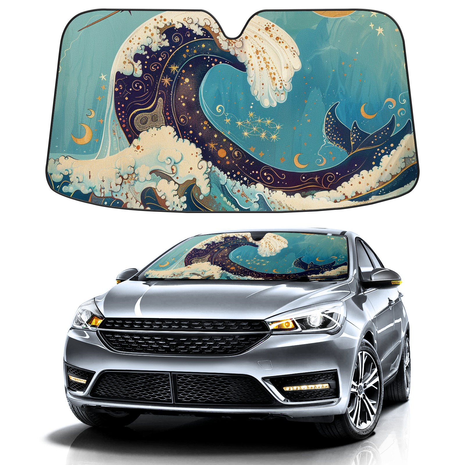 Car Windshield Sun Shade for Front Window Sharks And Cats Foldable Vehicle Windshield Car Sun Visor Covers Automotive Window Protector Car Camping Privacy Sun Blocker