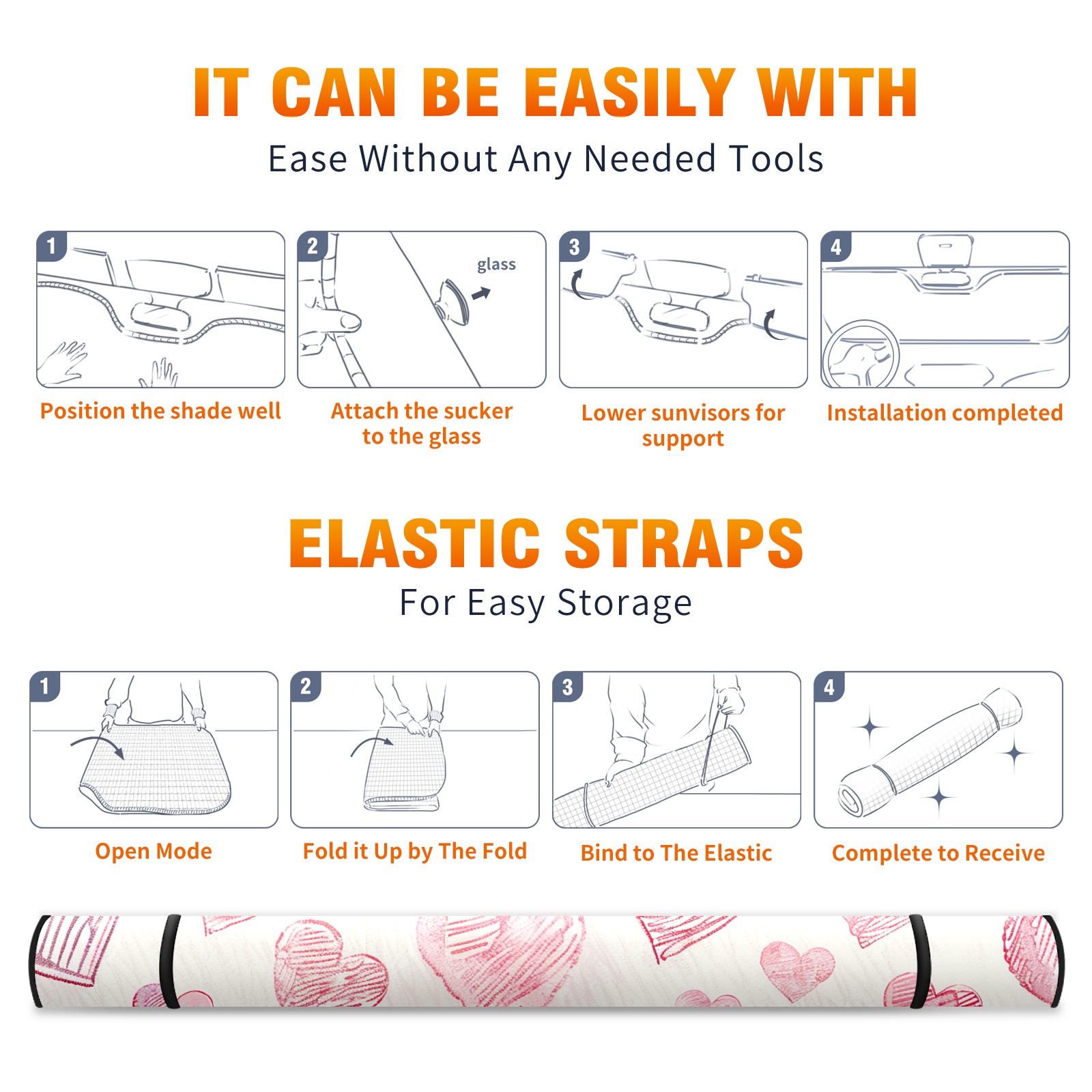 Car Windshield Sun Shade for Front Window Love Foldable Vehicle Windshield Car Sun Visor Covers Automotive Window Protector Car Camping Privacy Sun Blocker