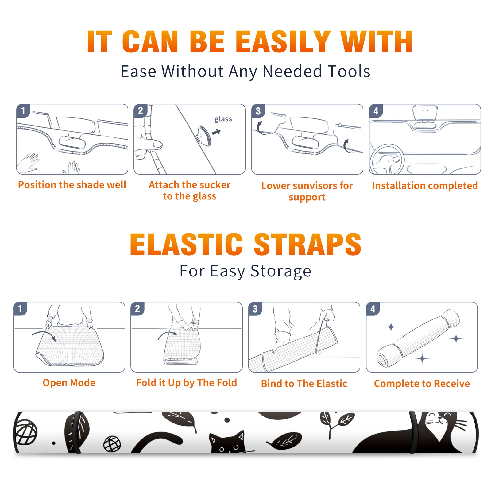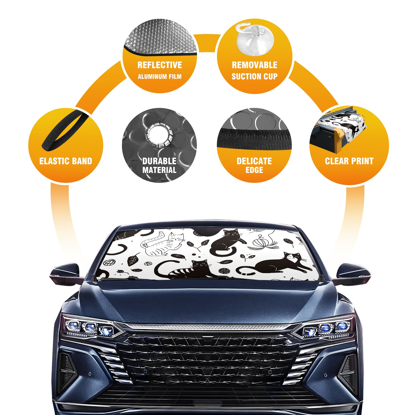 Car Windshield Sun Shade for Front Window Black Cat Foldable Vehicle Windshield Car Sun Visor Covers Automotive Window Protector Car Camping Privacy Sun Blocker