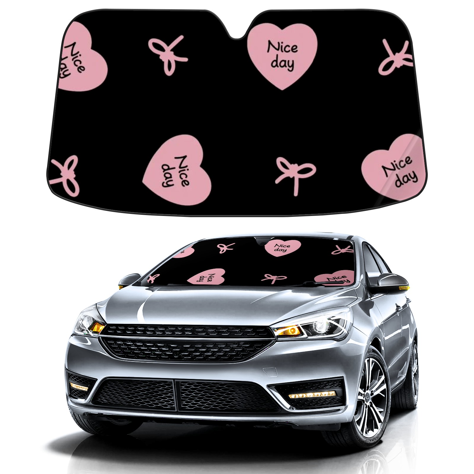 Car Windshield Sun Shade for Front Window Bow Tie Red Heart Foldable Vehicle Windshield Car Sun Visor Covers Automotive Window Protector Car Camping Privacy Sun Blocker