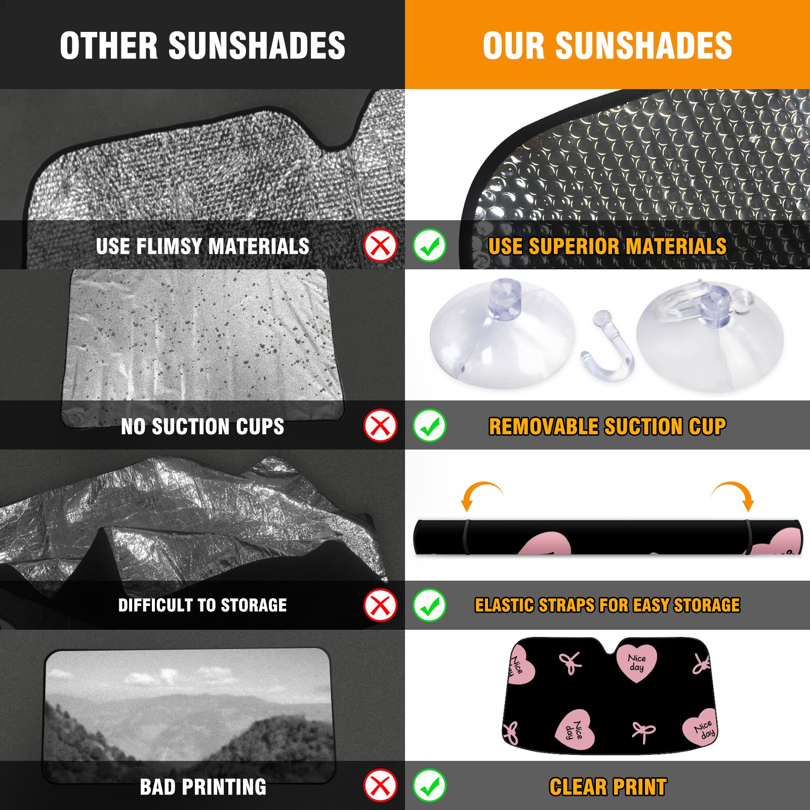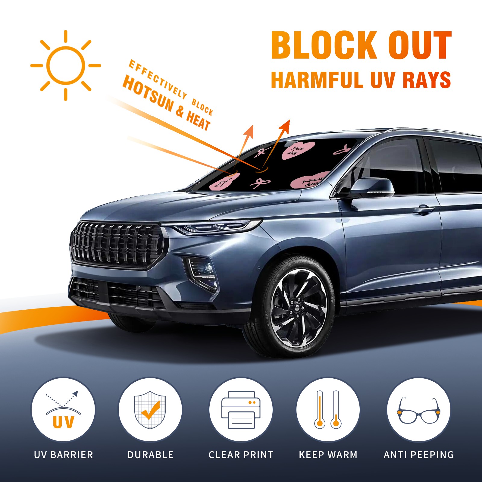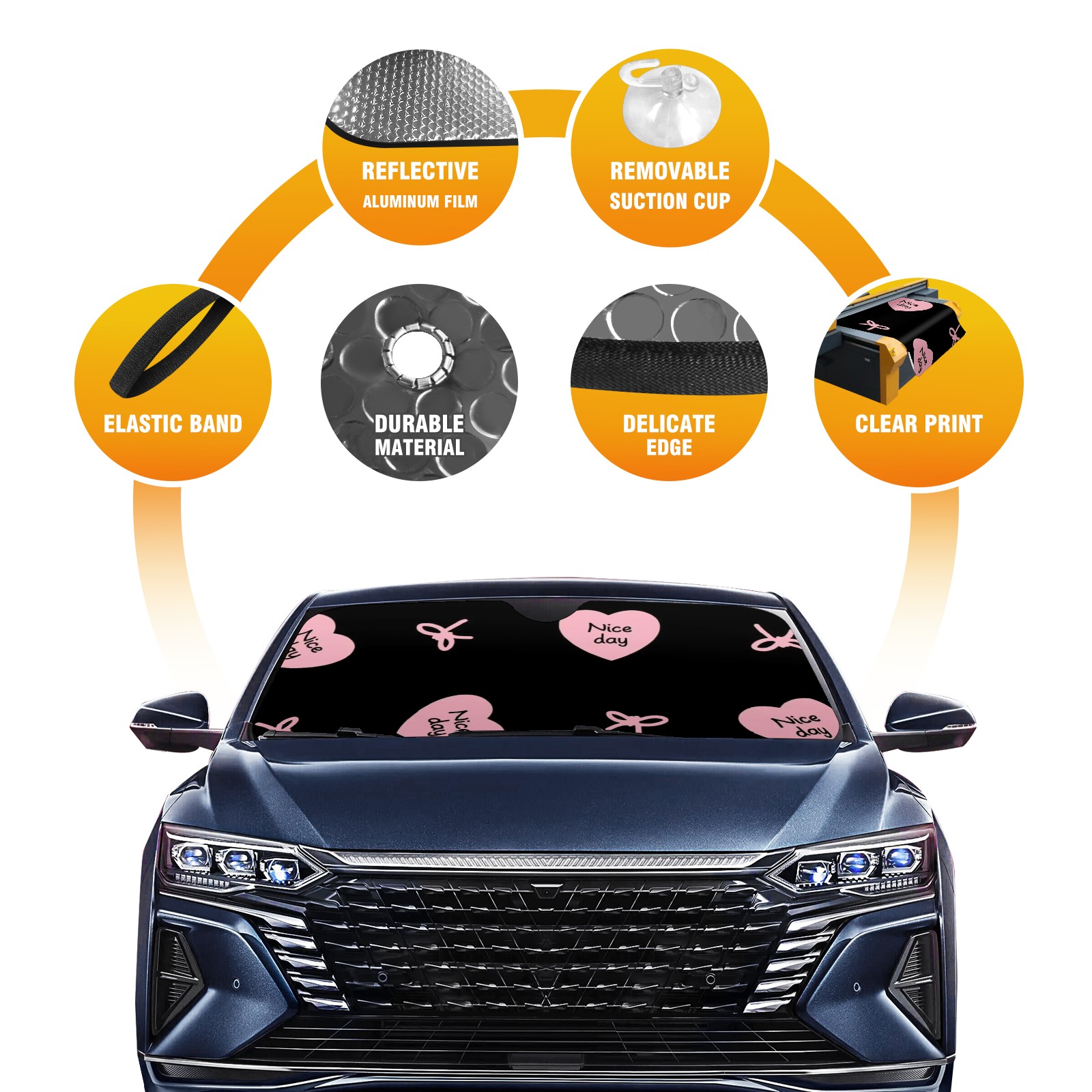 Diameter /Size 63"L x 33.5"W</b><br> Made from excellent materials which makes it sturdy and protects the car from the sun. Easy to use and pack. Makes the interior of the car cooler.You can easily stash the sunshade in the storage bag or store long term.It open and closes easy. Also the leather storage bag is durable and easy to put the umbrella back into.This windshield sunshade provides complete coverage and keeps your car interior cool under direct sun. It is easy to open and position under the windshield and around the rear-view mirror. Makes Your Car Easy To Identify, Perfect For Finding Your Car In Crowded Parking Lots And Garages.Great Choice: It Is A Great Gift For Dad, Boyfriend, Brother, Brother And Uncle, Friends, Classmates, Family And So On.<br> Notice:</b><br> Due To Difference Computer Monitors, The Color Maybe Slightly Different From Picture. As Different Measurement Methods, Measurement Data Will Float Within 2%.I Hope You Understand.<br> If You Have Any Question About The Item Please Do Not Hesitate To Contact Us Immediately And We Will Give You A Satisfactory Reply Within 24 Hours.