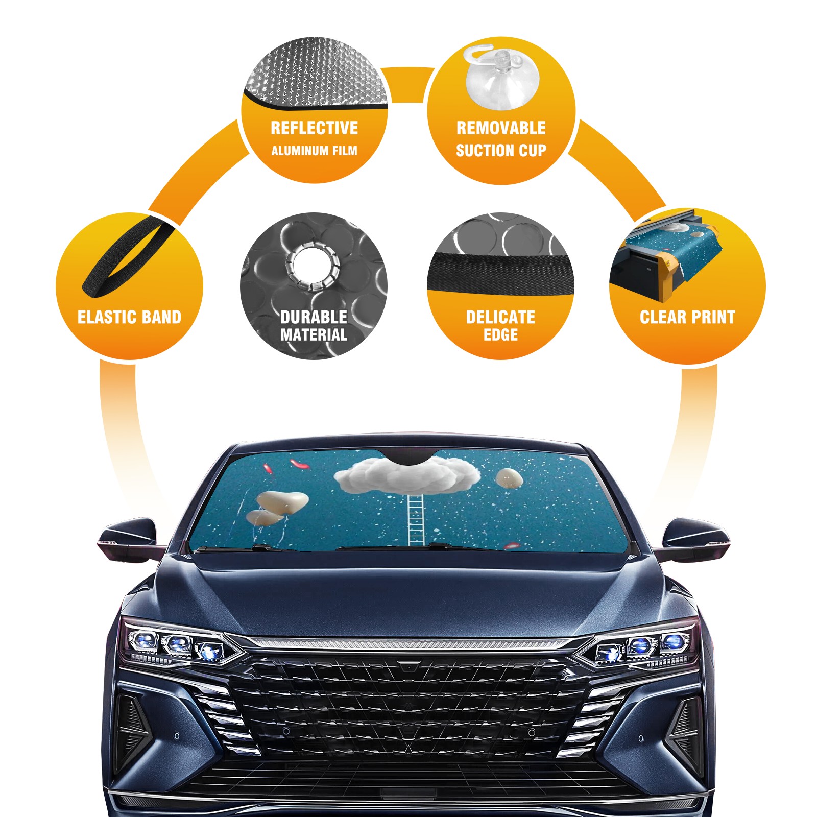 Car Windshield Sun Shade for Front Window Heart Cloud Foldable Vehicle Windshield Car Sun Visor Covers Automotive Window Protector Car Camping Privacy Sun Blocker