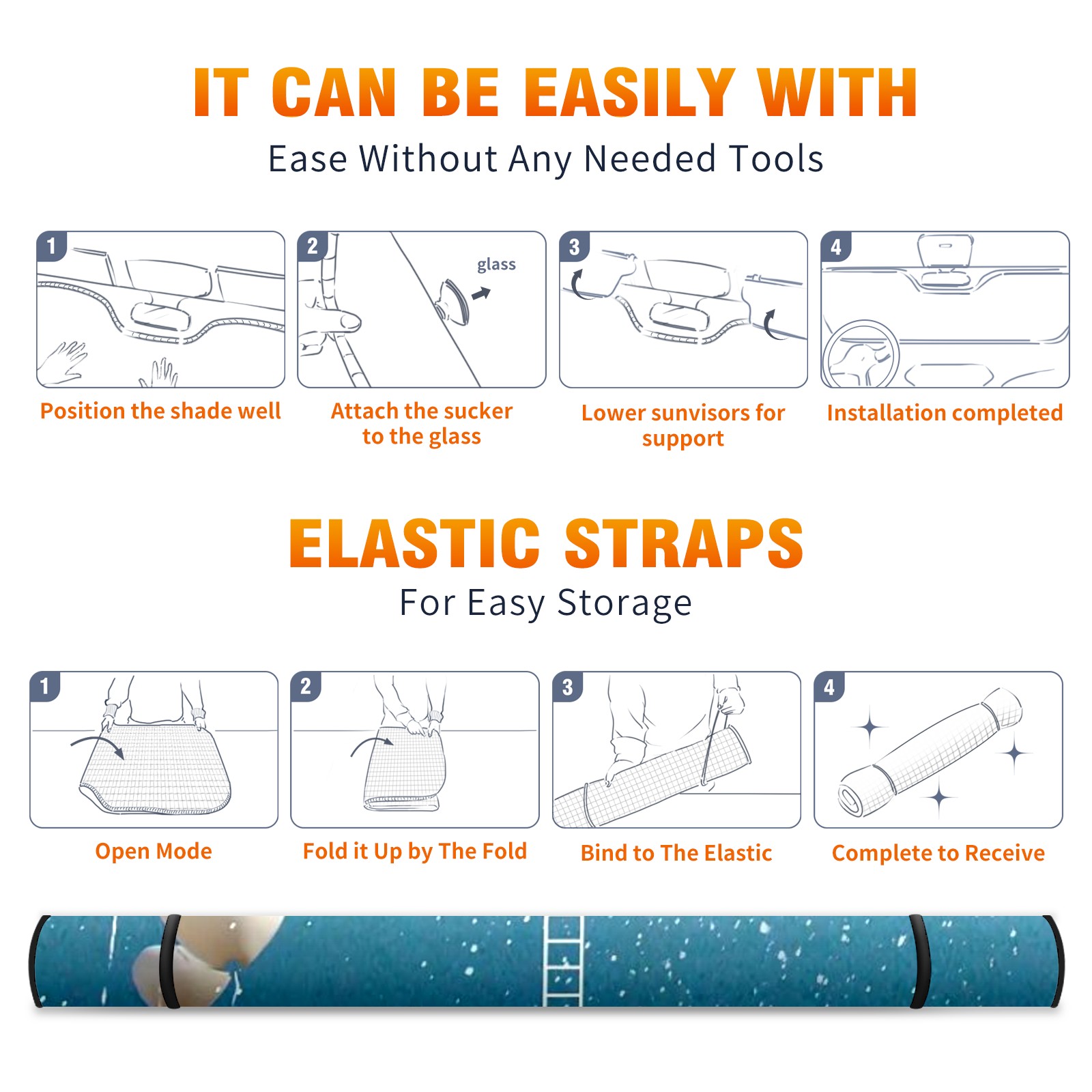 Diameter /Size 63"L x 33.5"W</b><br> Made from excellent materials which makes it sturdy and protects the car from the sun. Easy to use and pack. Makes the interior of the car cooler.You can easily stash the sunshade in the storage bag or store long term.It open and closes easy. Also the leather storage bag is durable and easy to put the umbrella back into.This windshield sunshade provides complete coverage and keeps your car interior cool under direct sun. It is easy to open and position under the windshield and around the rear-view mirror. Makes Your Car Easy To Identify, Perfect For Finding Your Car In Crowded Parking Lots And Garages.Great Choice: It Is A Great Gift For Dad, Boyfriend, Brother, Brother And Uncle, Friends, Classmates, Family And So On.<br> Notice:</b><br> Due To Difference Computer Monitors, The Color Maybe Slightly Different From Picture. As Different Measurement Methods, Measurement Data Will Float Within 2%.I Hope You Understand.<br> If You Have Any Question About The Item Please Do Not Hesitate To Contact Us Immediately And We Will Give You A Satisfactory Reply Within 24 Hours.