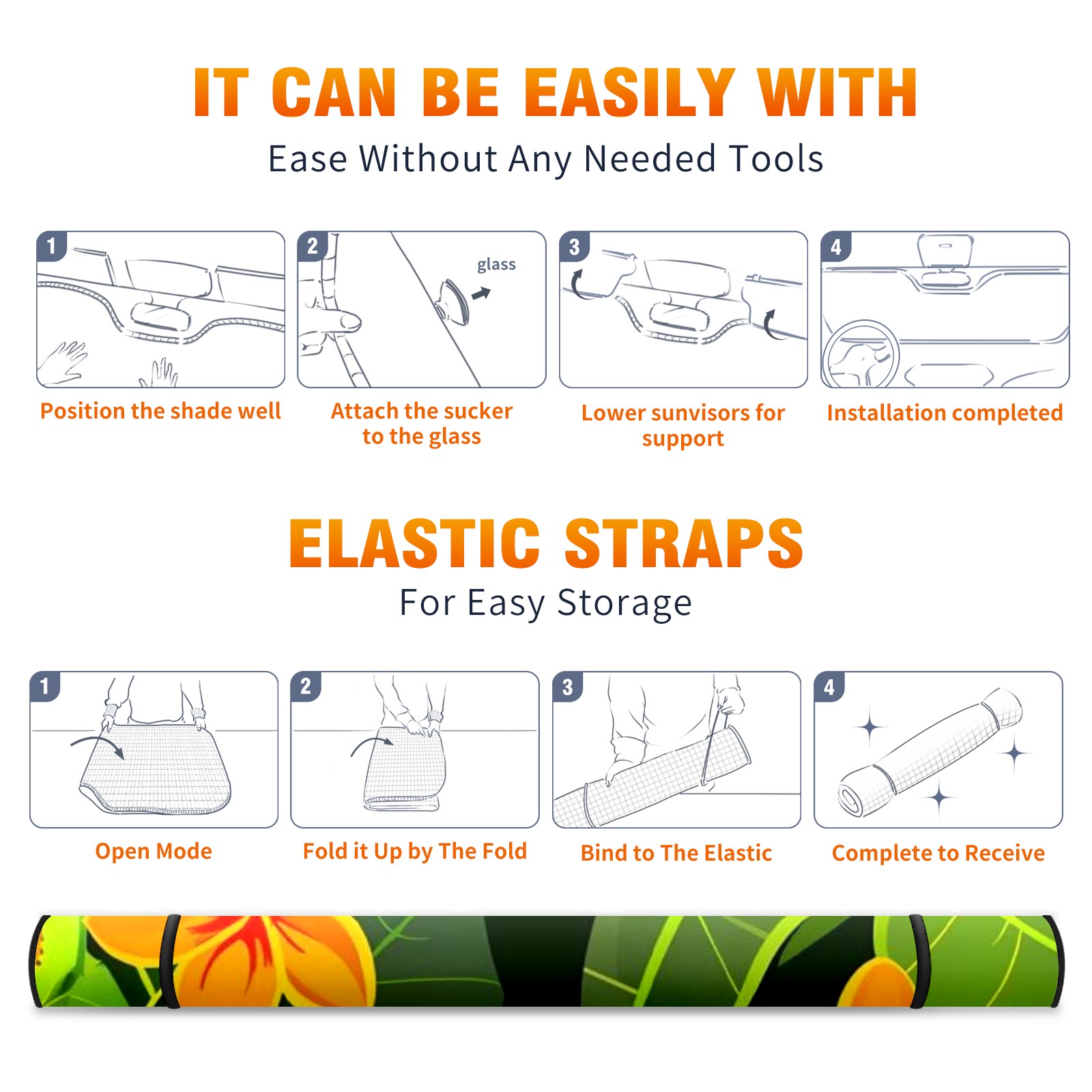Diameter /Size 63"L x 33.5"W</b><br> Made from excellent materials which makes it sturdy and protects the car from the sun. Easy to use and pack. Makes the interior of the car cooler.You can easily stash the sunshade in the storage bag or store long term.It open and closes easy. Also the leather storage bag is durable and easy to put the umbrella back into.This windshield sunshade provides complete coverage and keeps your car interior cool under direct sun. It is easy to open and position under the windshield and around the rear-view mirror. Makes Your Car Easy To Identify, Perfect For Finding Your Car In Crowded Parking Lots And Garages.Great Choice: It Is A Great Gift For Dad, Boyfriend, Brother, Brother And Uncle, Friends, Classmates, Family And So On.<br> Notice:</b><br> Due To Difference Computer Monitors, The Color Maybe Slightly Different From Picture. As Different Measurement Methods, Measurement Data Will Float Within 2%.I Hope You Understand.<br> If You Have Any Question About The Item Please Do Not Hesitate To Contact Us Immediately And We Will Give You A Satisfactory Reply Within 24 Hours.