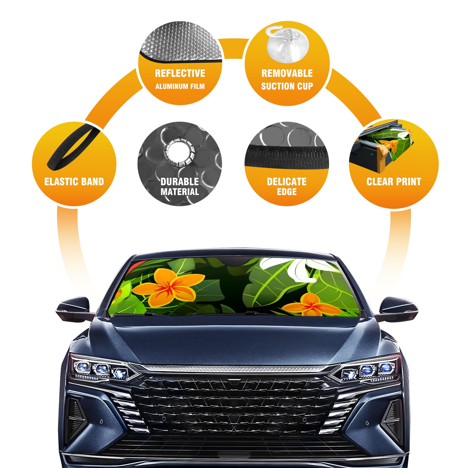 Car Windshield Sun Shade for Front Window Green Leaves Foldable Vehicle Windshield Car Sun Visor Covers Automotive Window Protector Car Camping Privacy Sun Blocker