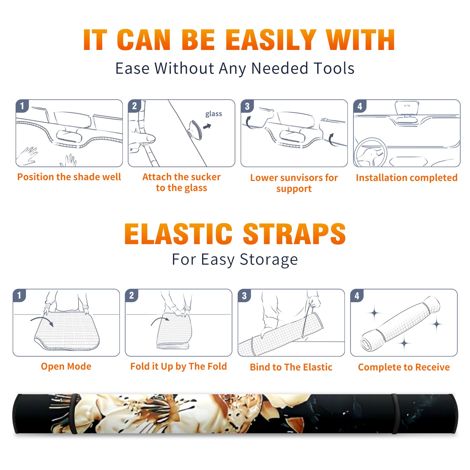 Diameter /Size 63"L x 33.5"W</b><br> Made from excellent materials which makes it sturdy and protects the car from the sun. Easy to use and pack. Makes the interior of the car cooler.You can easily stash the sunshade in the storage bag or store long term.It open and closes easy. Also the leather storage bag is durable and easy to put the umbrella back into.This windshield sunshade provides complete coverage and keeps your car interior cool under direct sun. It is easy to open and position under the windshield and around the rear-view mirror. Makes Your Car Easy To Identify, Perfect For Finding Your Car In Crowded Parking Lots And Garages.Great Choice: It Is A Great Gift For Dad, Boyfriend, Brother, Brother And Uncle, Friends, Classmates, Family And So On.<br> Notice:</b><br> Due To Difference Computer Monitors, The Color Maybe Slightly Different From Picture. As Different Measurement Methods, Measurement Data Will Float Within 2%.I Hope You Understand.<br> If You Have Any Question About The Item Please Do Not Hesitate To Contact Us Immediately And We Will Give You A Satisfactory Reply Within 24 Hours.