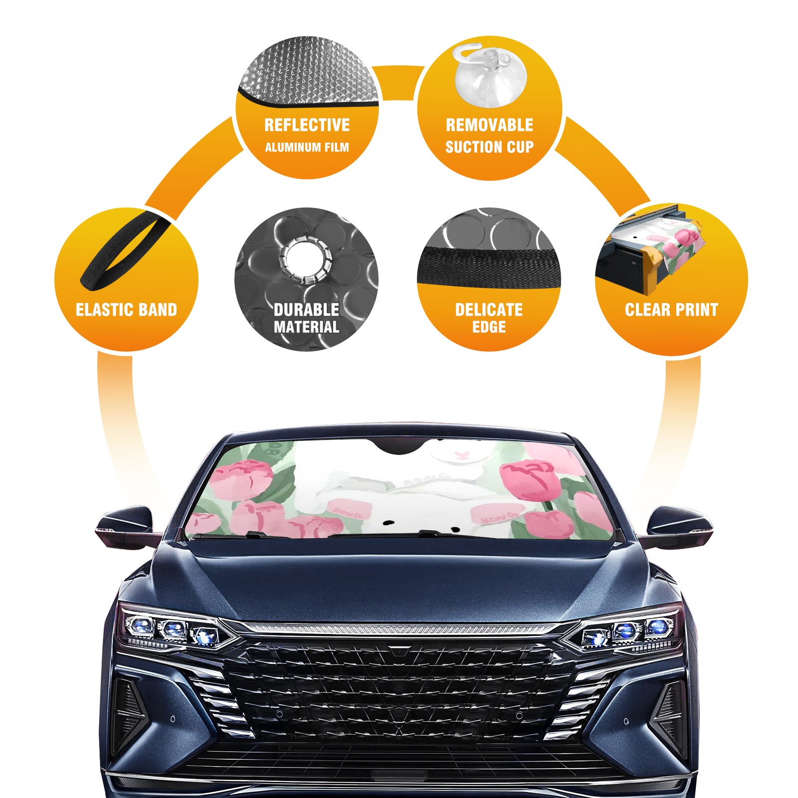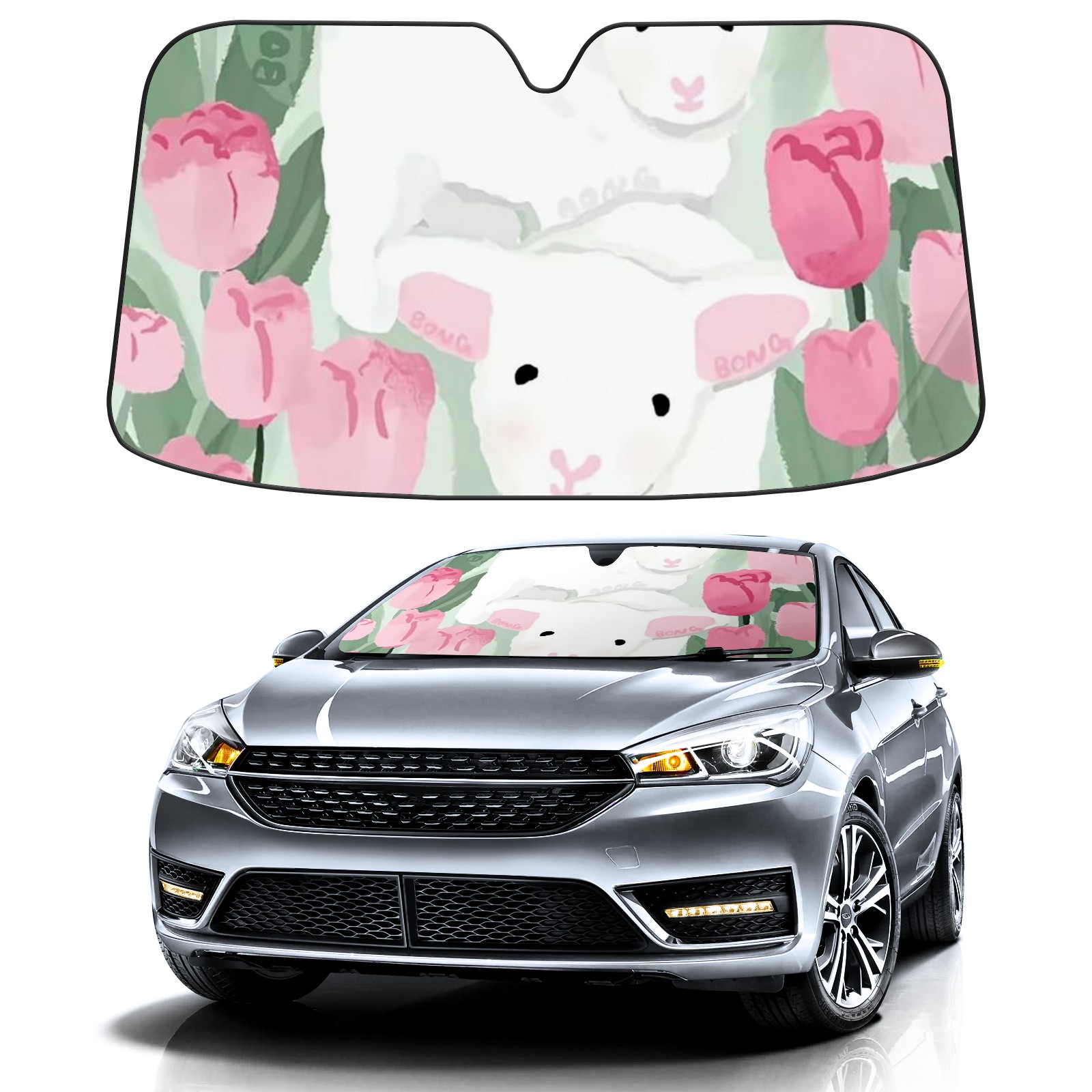 Car Windshield Sun Shade for Front Window Sheep Flower Foldable Vehicle Windshield Car Sun Visor Covers Automotive Window Protector Car Camping Privacy Sun Blocker