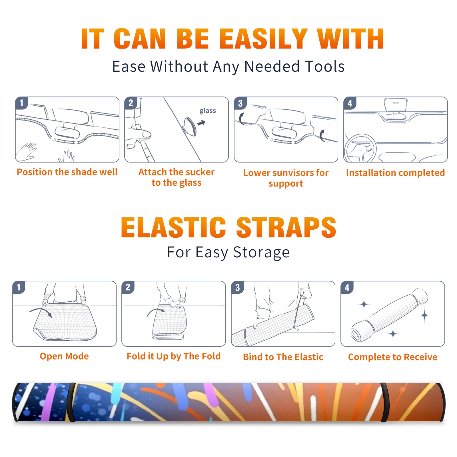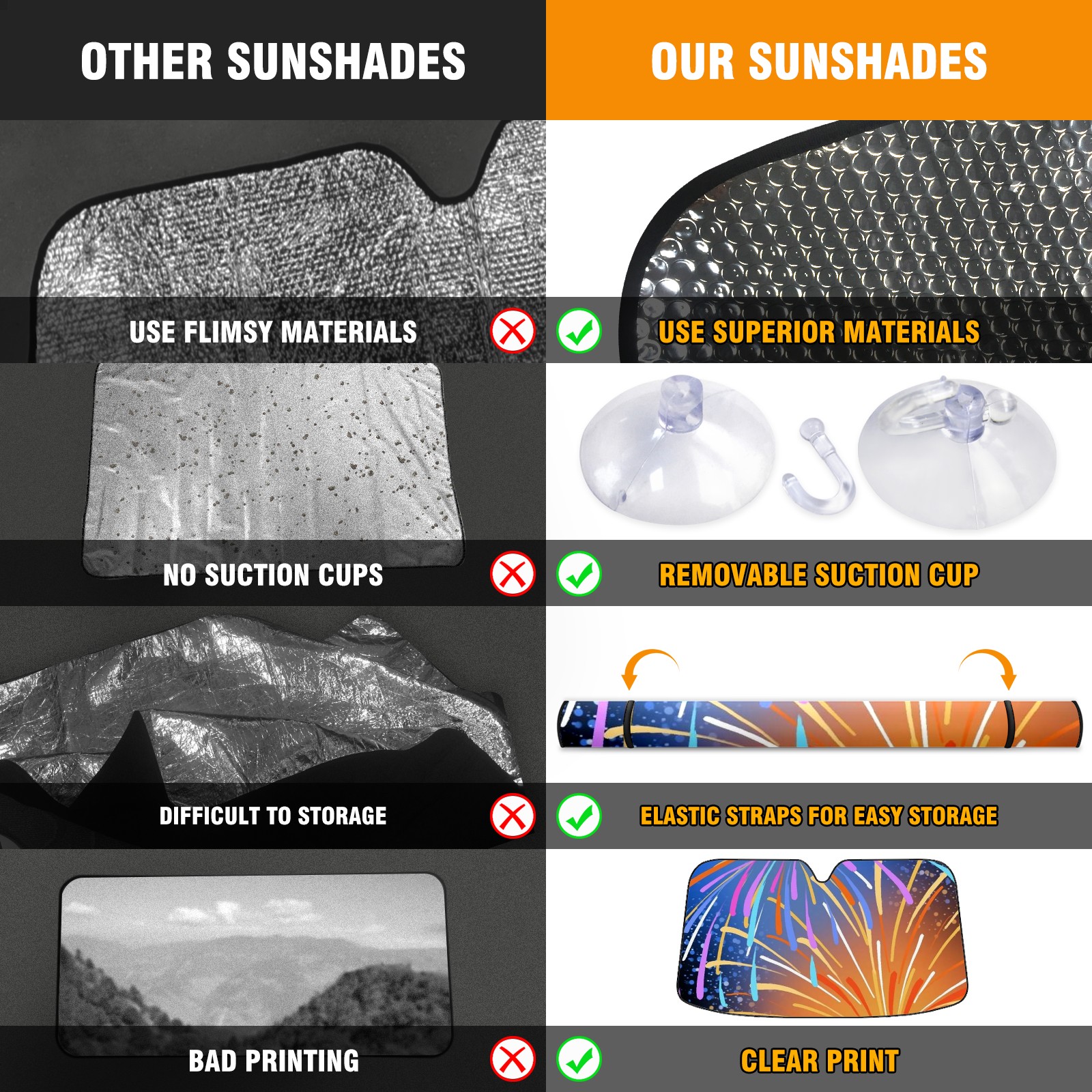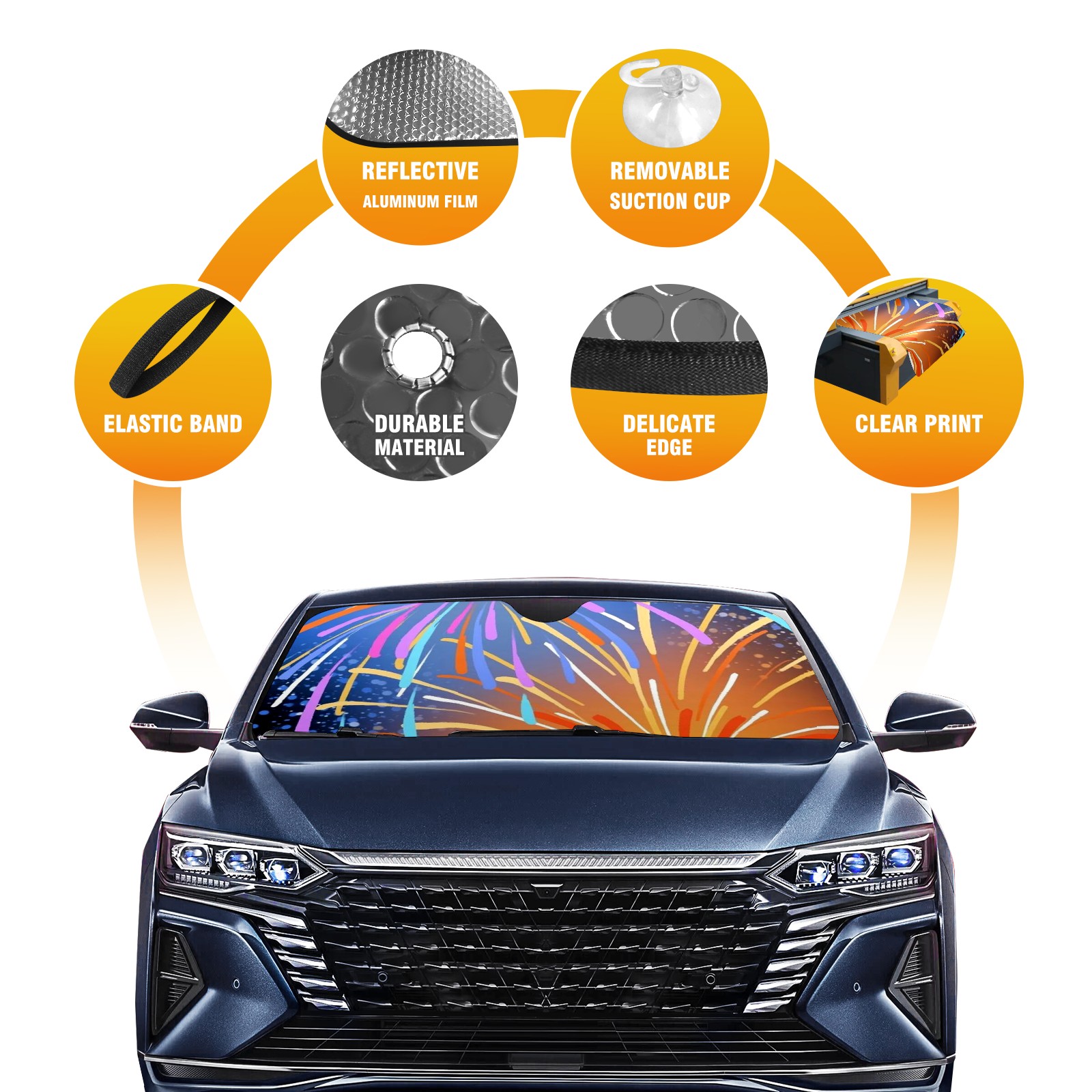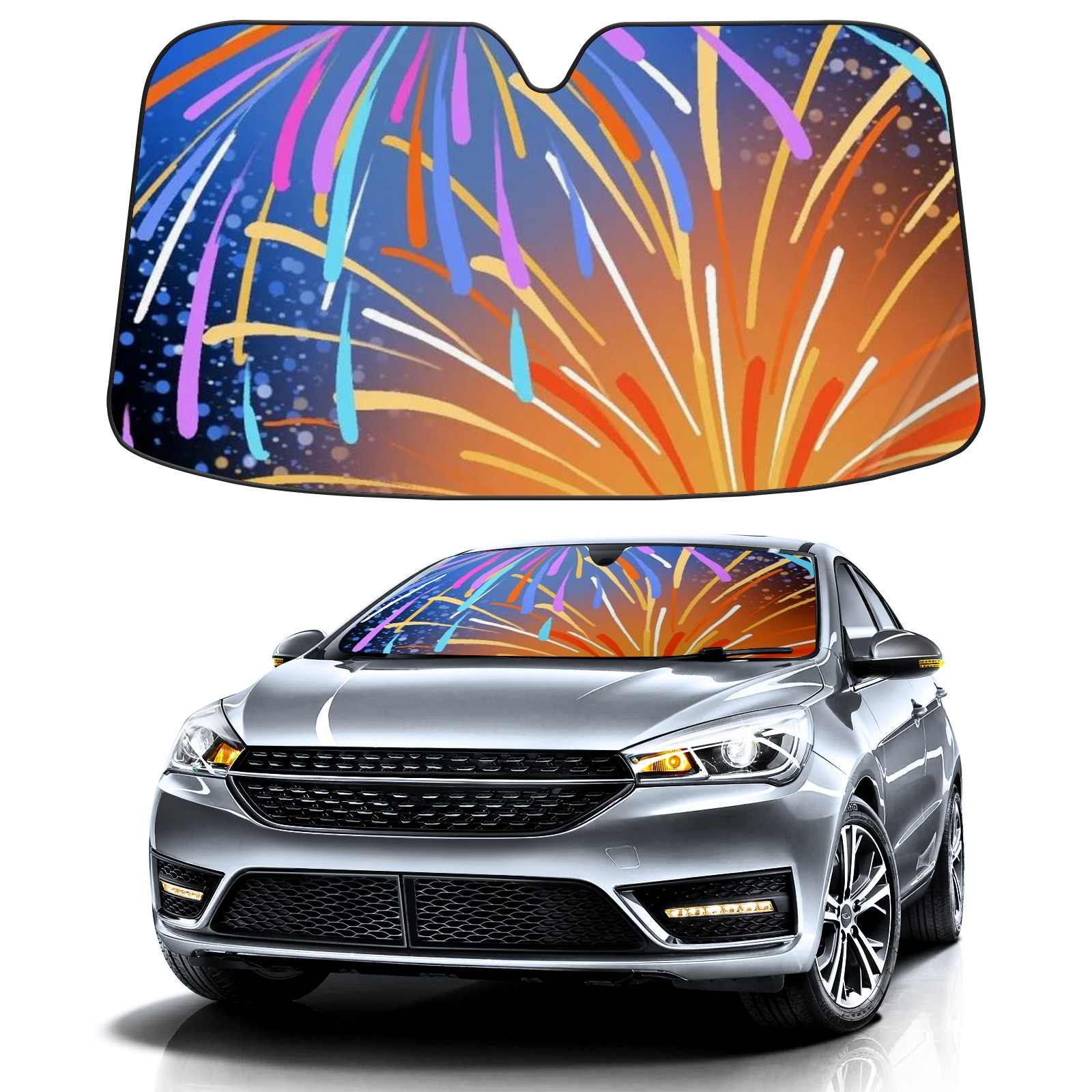 Car Windshield Sun Shade for Front Window Fireworks Foldable Vehicle Windshield Car Sun Visor Covers Automotive Window Protector Car Camping Privacy Sun Blocker