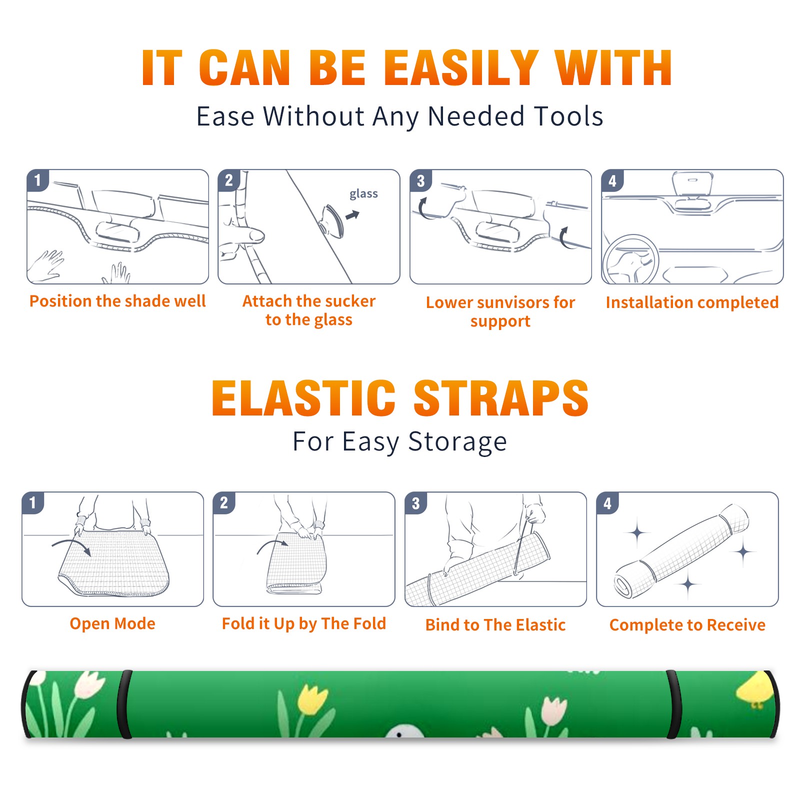 • Diameter /Size 63"L x 33.5"W</b><br> Made from excellent materials which makes it sturdy and protects the car from the sun. Easy to use and pack. Makes the interior of the car cooler.You can easily stash the sunshade in the storage bag or store long term.It open and closes easy. Also the leather storage bag is durable and easy to put the umbrella back into.This windshield sunshade provides complete coverage and keeps your car interior cool under direct sun. It is easy to open and position under the windshield and around the rear-view mirror. Makes Your Car Easy To Identify, Perfect For Finding Your Car In Crowded Parking Lots And Garages.Great Choice: It Is A Great Gift For Dad, Boyfriend, Brother, Brother And Uncle, Friends, Classmates, Family And So On.<br> Notice:</b><br> Due To Difference Computer Monitors, The Color Maybe Slightly Different From Picture. As Different Measurement Methods, Measurement Data Will Float Within 2%.I Hope You Understand.<br> If You Have Any Question About The Item Please Do Not Hesitate To Contact Us Immediately And We Will Give You A Satisfactory Reply Within 24 Hours.