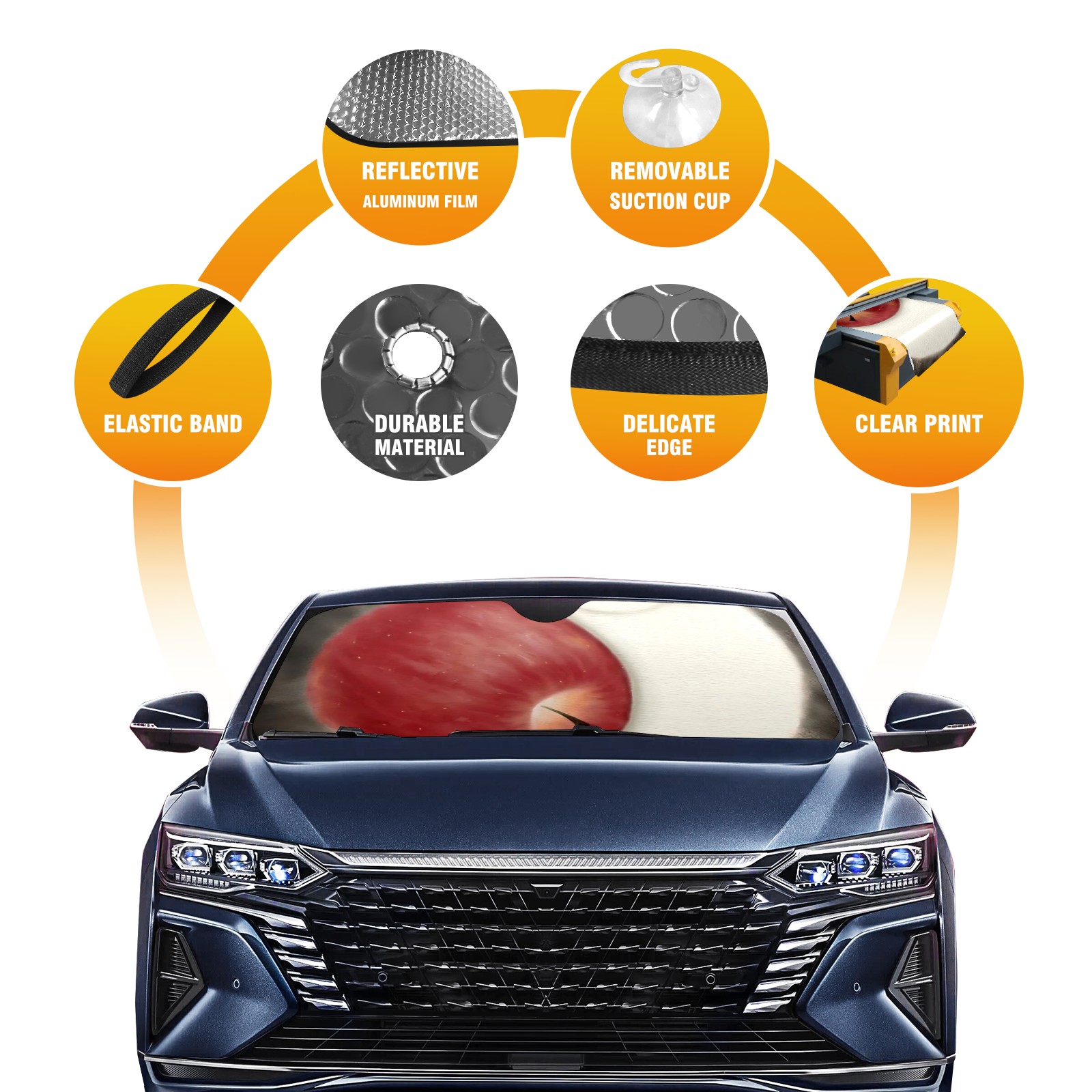 Car Windshield Sun Shade for Front Window Cat Apples Foldable Vehicle Windshield Car Sun Visor Covers Automotive Window Protector Car Camping Privacy Sun Blocker