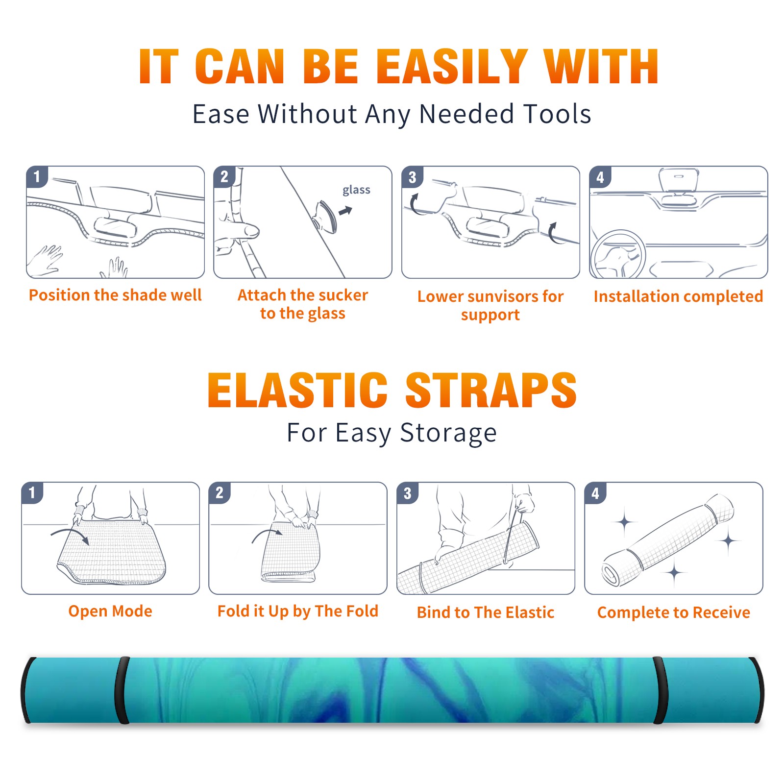 Diameter /Size 63"L x 33.5"W</b><br> Made from excellent materials which makes it sturdy and protects the car from the sun. Easy to use and pack. Makes the interior of the car cooler.You can easily stash the sunshade in the storage bag or store long term.It open and closes easy. Also the leather storage bag is durable and easy to put the umbrella back into.This windshield sunshade provides complete coverage and keeps your car interior cool under direct sun. It is easy to open and position under the windshield and around the rear-view mirror. Makes Your Car Easy To Identify, Perfect For Finding Your Car In Crowded Parking Lots And Garages.Great Choice: It Is A Great Gift For Dad, Boyfriend, Brother, Brother And Uncle, Friends, Classmates, Family And So On.<br> Notice:</b><br> Due To Difference Computer Monitors, The Color Maybe Slightly Different From Picture. As Different Measurement Methods, Measurement Data Will Float Within 2%.I Hope You Understand.<br> If You Have Any Question About The Item Please Do Not Hesitate To Contact Us Immediately And We Will Give You A Satisfactory Reply Within 24 Hours.