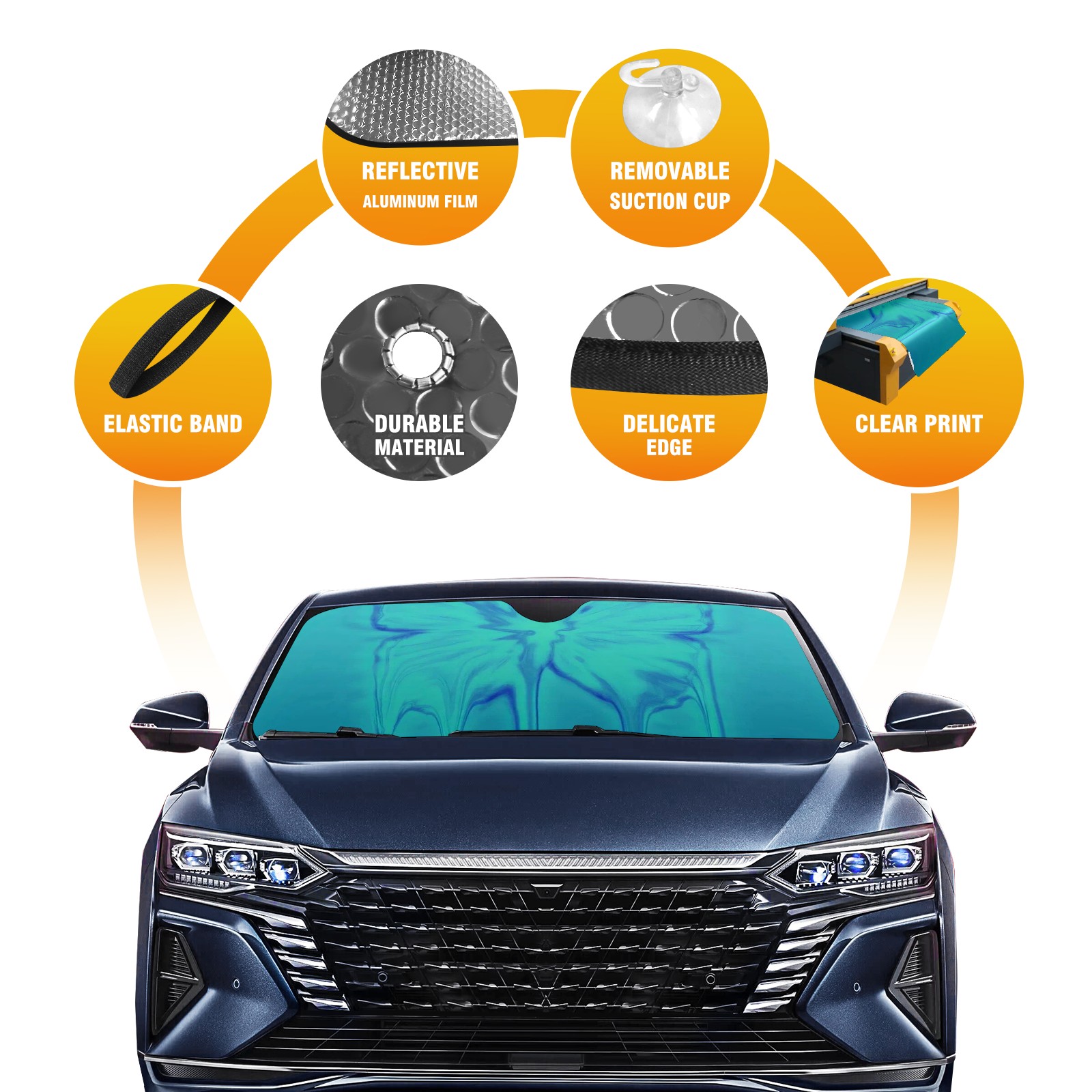 Car Windshield Sun Shade for Front Window Green Butterfly Foldable Vehicle Windshield Car Sun Visor Covers Automotive Window Protector Car Camping Privacy Sun Blocker