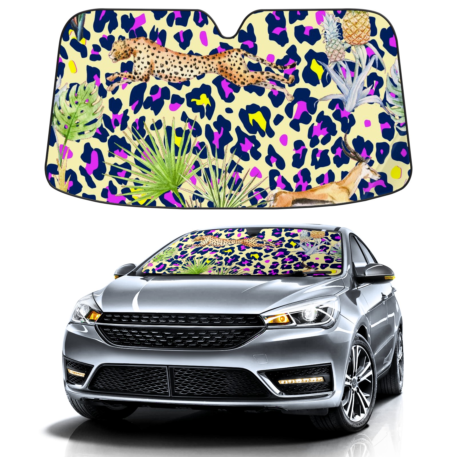 Car Windshield Sun Shade for Front Window Leopard Print Foldable Vehicle Windshield Car Sun Visor Covers Automotive Window Protector Car Camping Privacy Sun Blocker