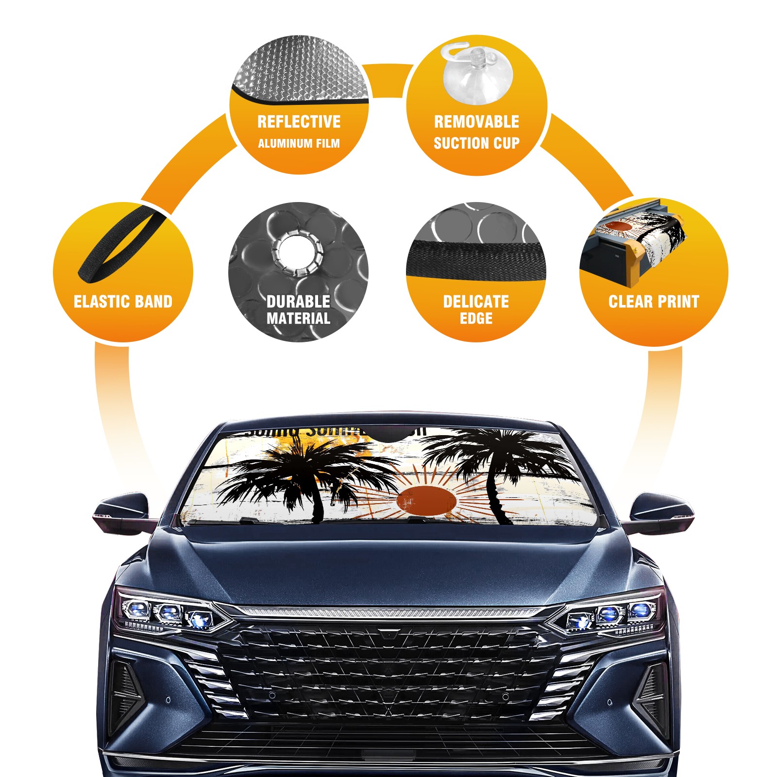 Diameter /Size 63"L x 33.5"W</b><br> Made from excellent materials which makes it sturdy and protects the car from the sun. Easy to use and pack. Makes the interior of the car cooler.You can easily stash the sunshade in the storage bag or store long term.It open and closes easy. Also the leather storage bag is durable and easy to put the umbrella back into.This windshield sunshade provides complete coverage and keeps your car interior cool under direct sun. It is easy to open and position under the windshield and around the rear-view mirror. Makes Your Car Easy To Identify, Perfect For Finding Your Car In Crowded Parking Lots And Garages.Great Choice: It Is A Great Gift For Dad, Boyfriend, Brother, Brother And Uncle, Friends, Classmates, Family And So On.<br> Notice:</b><br> Due To Difference Computer Monitors, The Color Maybe Slightly Different From Picture. As Different Measurement Methods, Measurement Data Will Float Within 2%.I Hope You Understand.<br> If You Have Any Question About The Item Please Do Not Hesitate To Contact Us Immediately And We Will Give You A Satisfactory Reply Within 24 Hours.