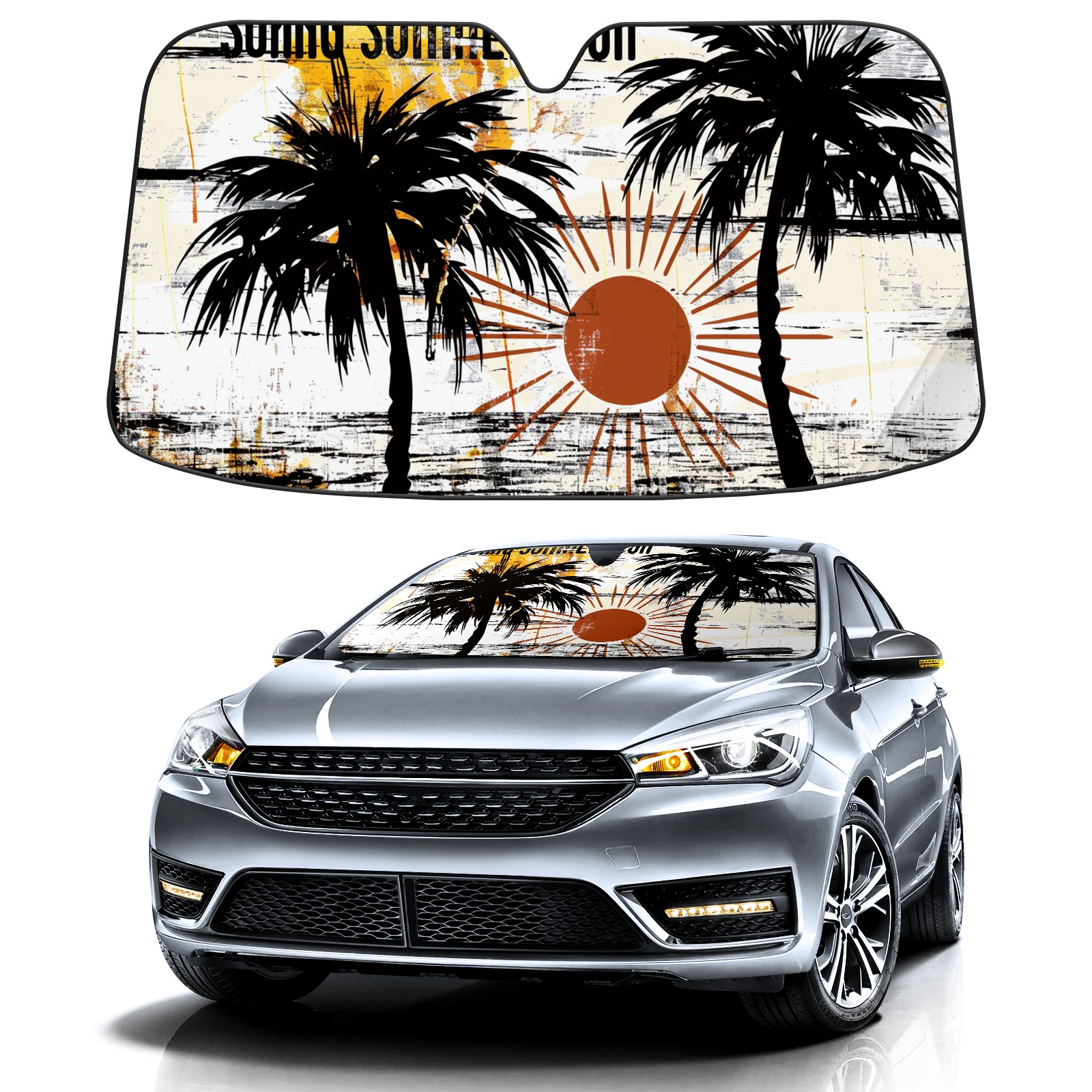 Car Windshield Sun Shade for Front Window Coconut Trees Foldable Vehicle Windshield Car Sun Visor Covers Automotive Window Protector Car Camping Privacy Sun Blocker