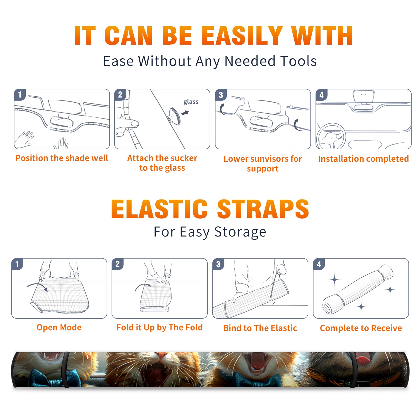 Car Windshield Sun Shade for Front Window Cat's Car Concert Foldable Vehicle Windshield Car Sun Visor Covers Automotive Window Protector Car Camping Privacy Sun Blocker