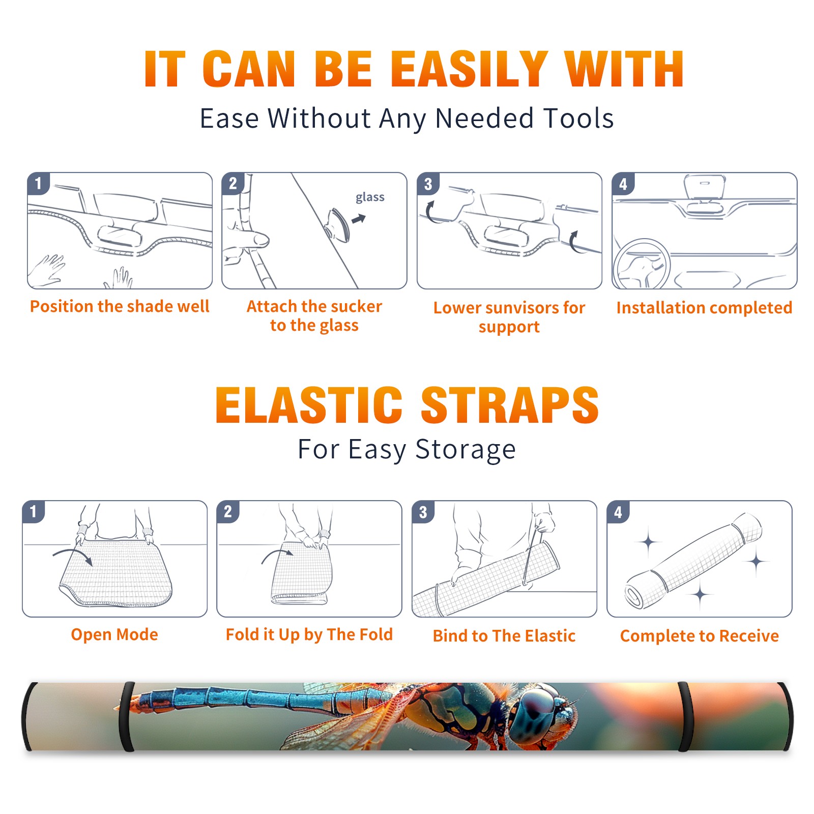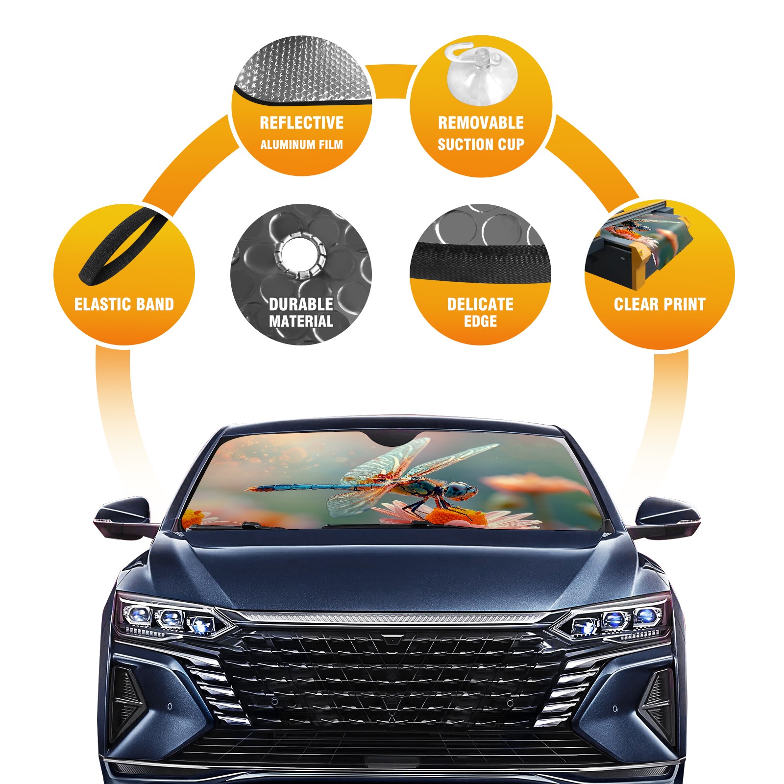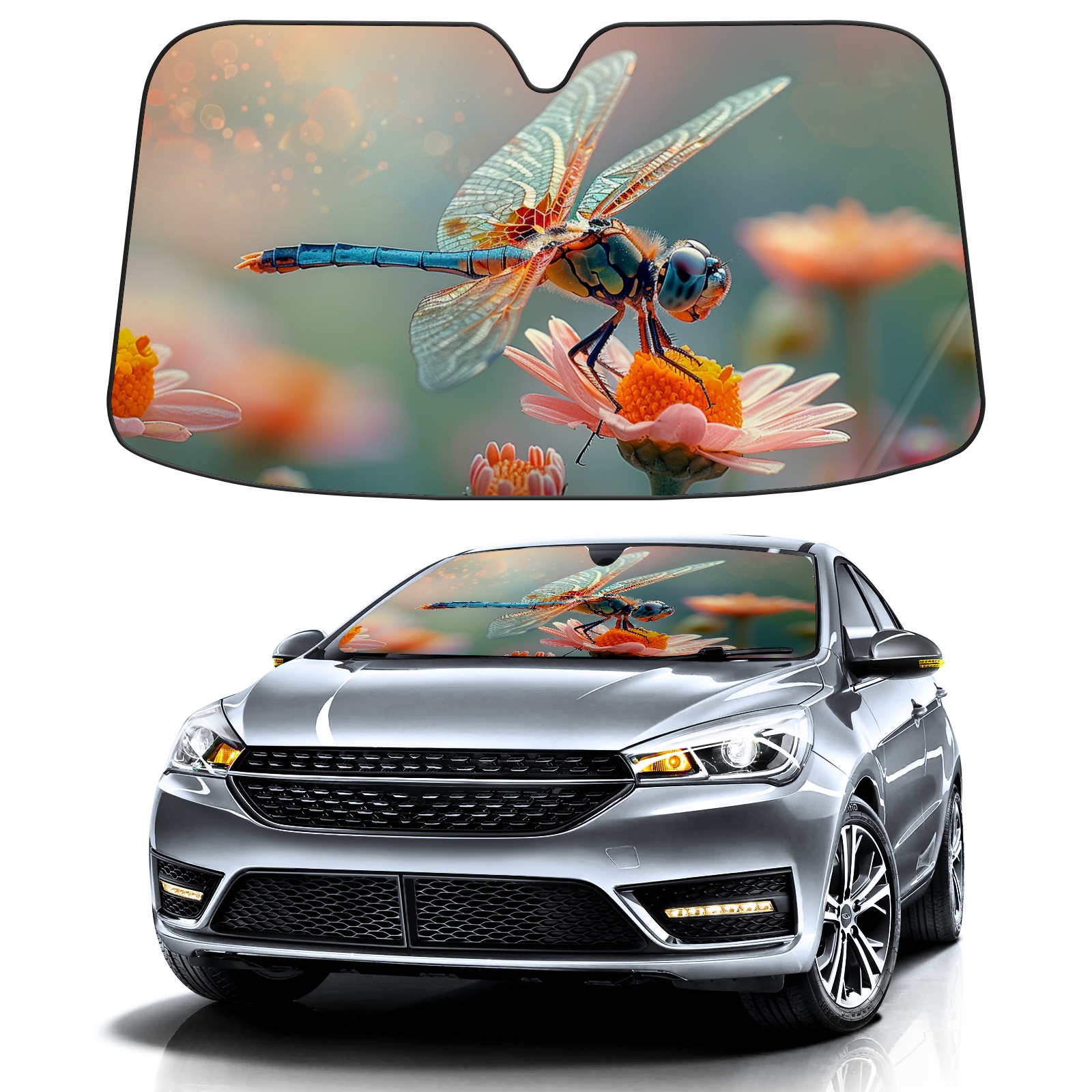 Car Windshield Sun Shade for Front Window Dragonfly Foldable Vehicle Windshield Car Sun Visor Covers Automotive Window Protector Car Camping Privacy Sun Blocker