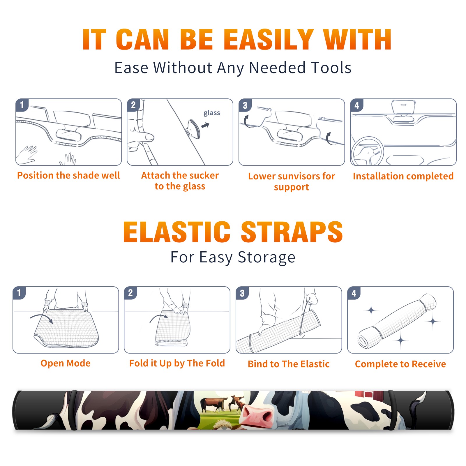 Car Windshield Sun Shade for Front Window Cow (20) Foldable Vehicle Windshield Car Sun Visor Covers Automotive Window Protector Car Camping Privacy Sun Blocker