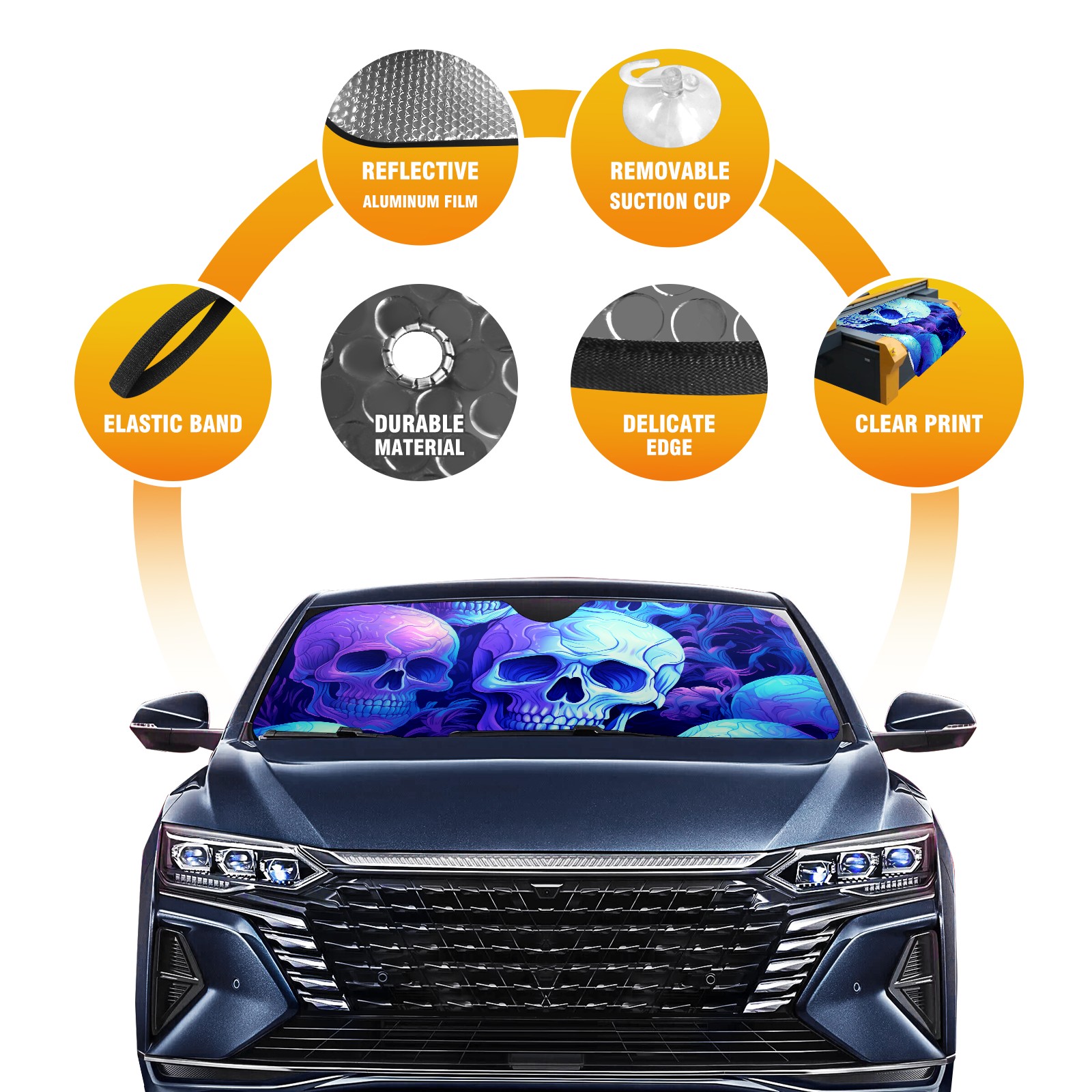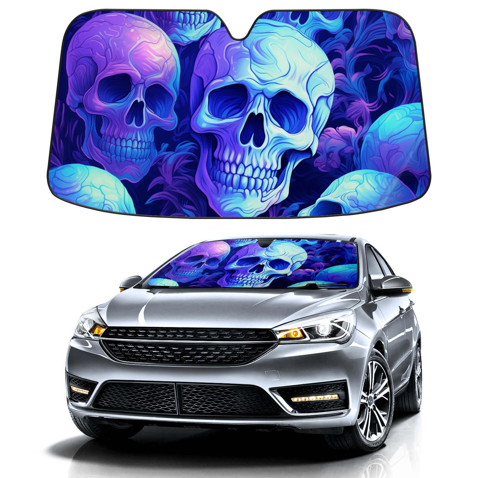 Car Windshield Sun Shade for Front Window Cute Skull (5) Foldable Vehicle Windshield Car Sun Visor Covers Automotive Window Protector Car Camping Privacy Sun Blocker