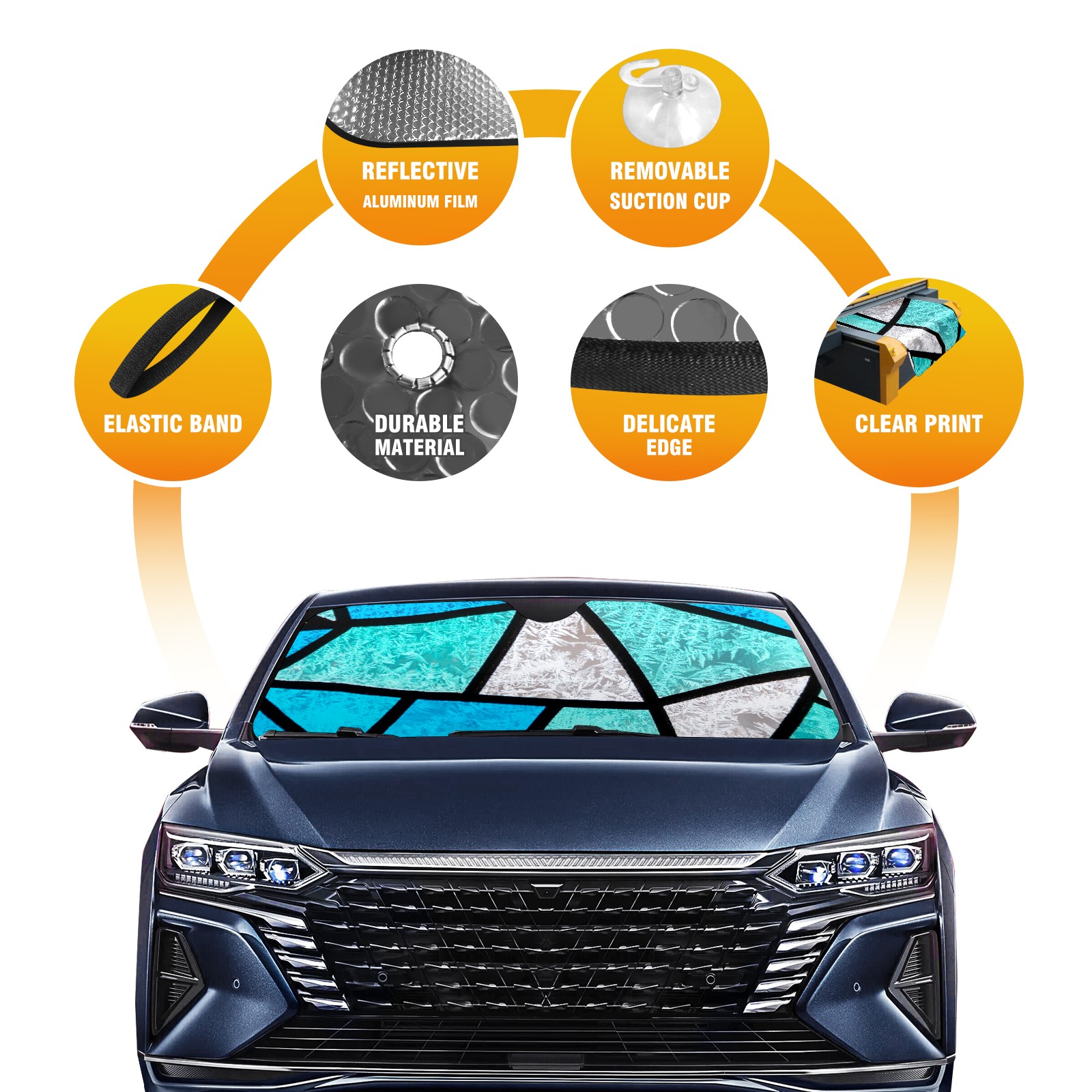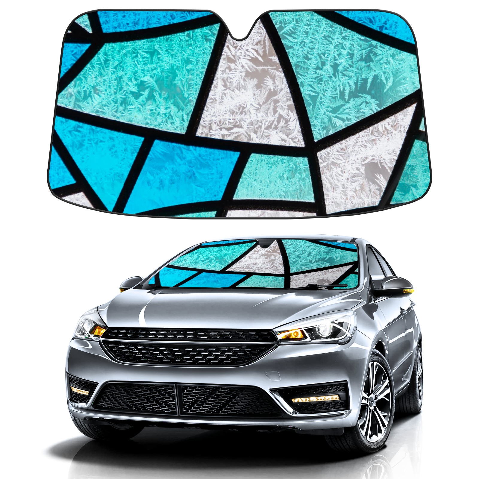 Car Windshield Sun Shade for Front Window Stained Glass Foldable Vehicle Windshield Car Sun Visor Covers Automotive Window Protector Car Camping Privacy Sun Blocker