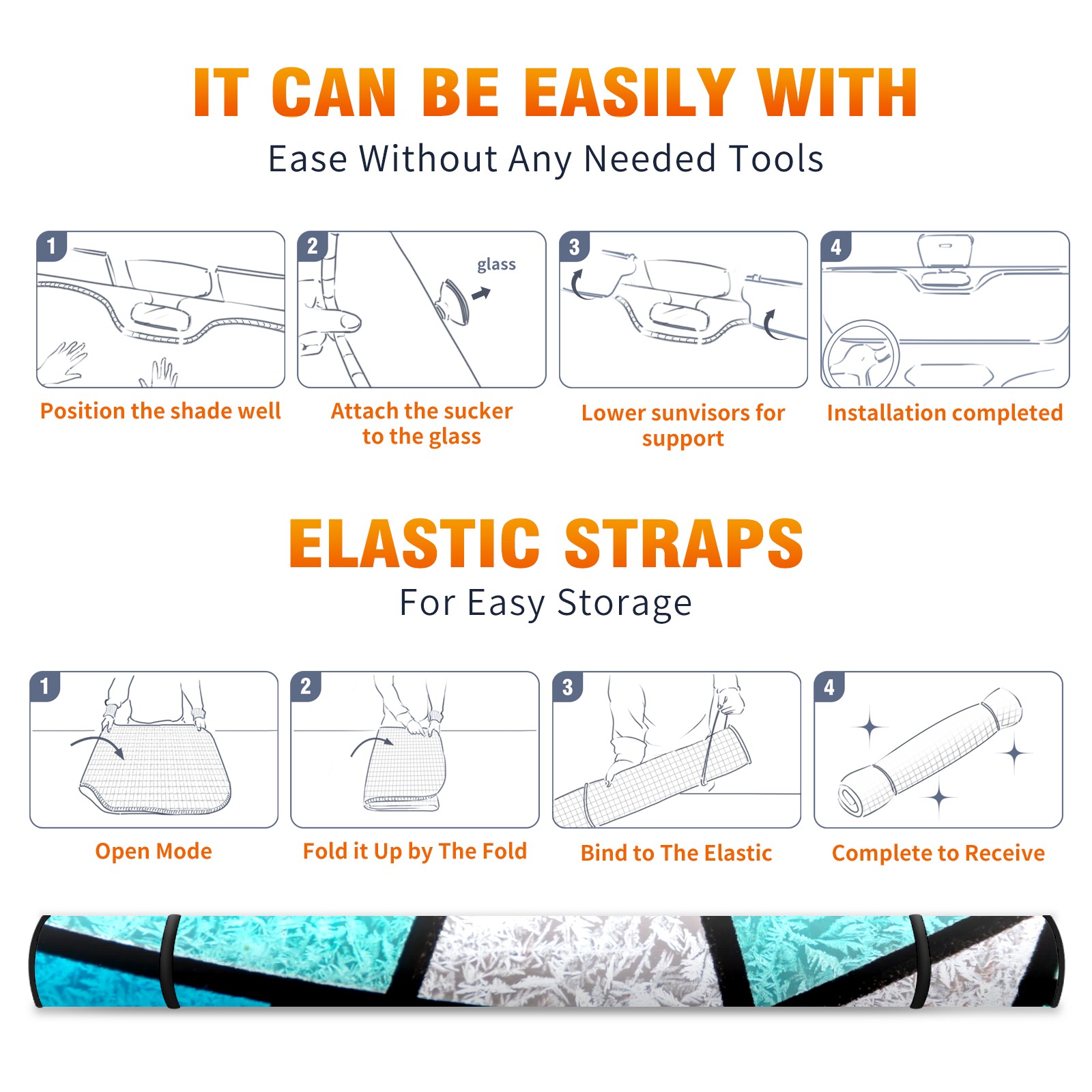 Diameter /Size 63"L x 33.5"W</b><br> Made from excellent materials which makes it sturdy and protects the car from the sun. Easy to use and pack. Makes the interior of the car cooler.You can easily stash the sunshade in the storage bag or store long term.It open and closes easy. Also the leather storage bag is durable and easy to put the umbrella back into.This windshield sunshade provides complete coverage and keeps your car interior cool under direct sun. It is easy to open and position under the windshield and around the rear-view mirror. Makes Your Car Easy To Identify, Perfect For Finding Your Car In Crowded Parking Lots And Garages.Great Choice: It Is A Great Gift For Dad, Boyfriend, Brother, Brother And Uncle, Friends, Classmates, Family And So On.<br> Notice:</b><br> Due To Difference Computer Monitors, The Color Maybe Slightly Different From Picture. As Different Measurement Methods, Measurement Data Will Float Within 2%.I Hope You Understand.<br> If You Have Any Question About The Item Please Do Not Hesitate To Contact Us Immediately And We Will Give You A Satisfactory Reply Within 24 Hours.
