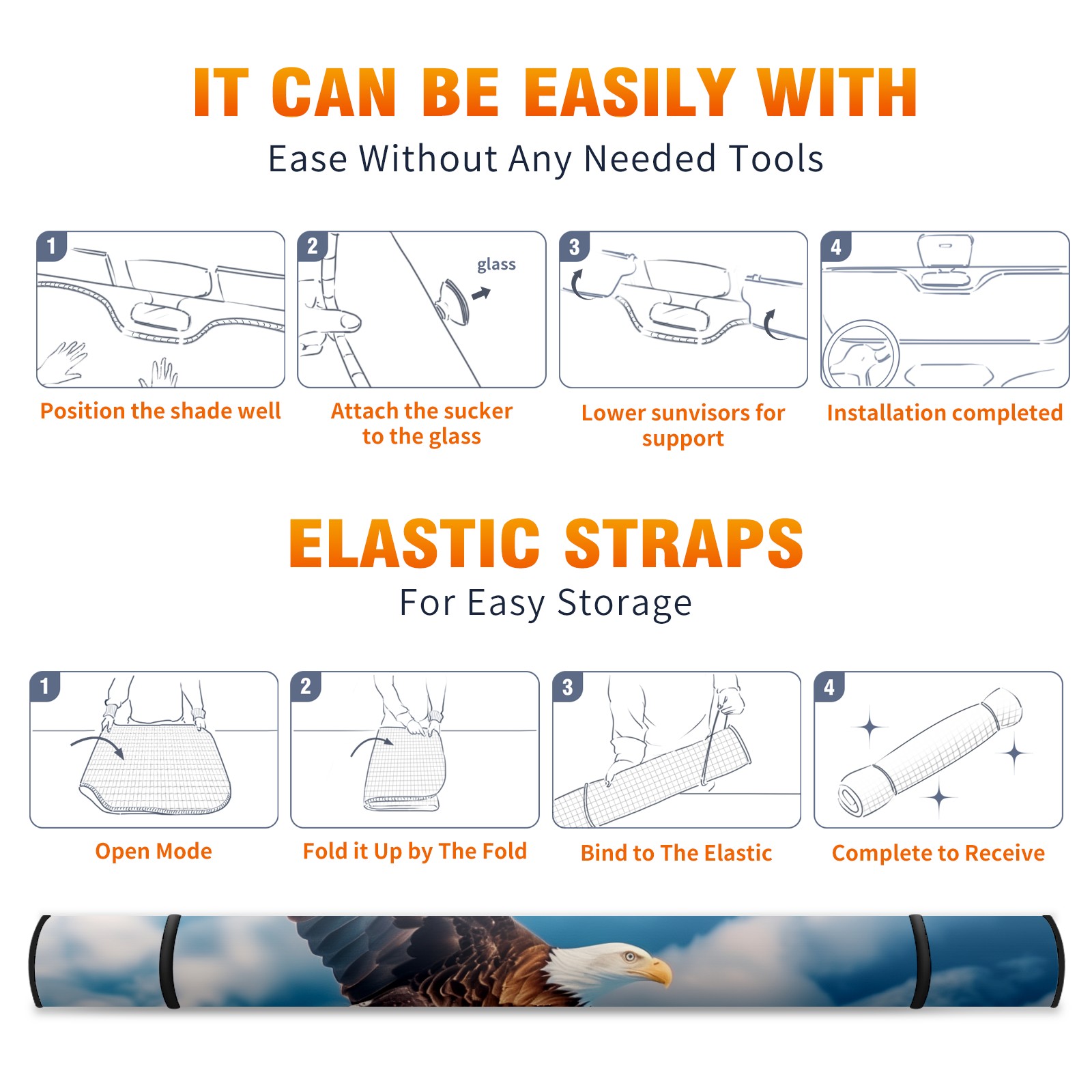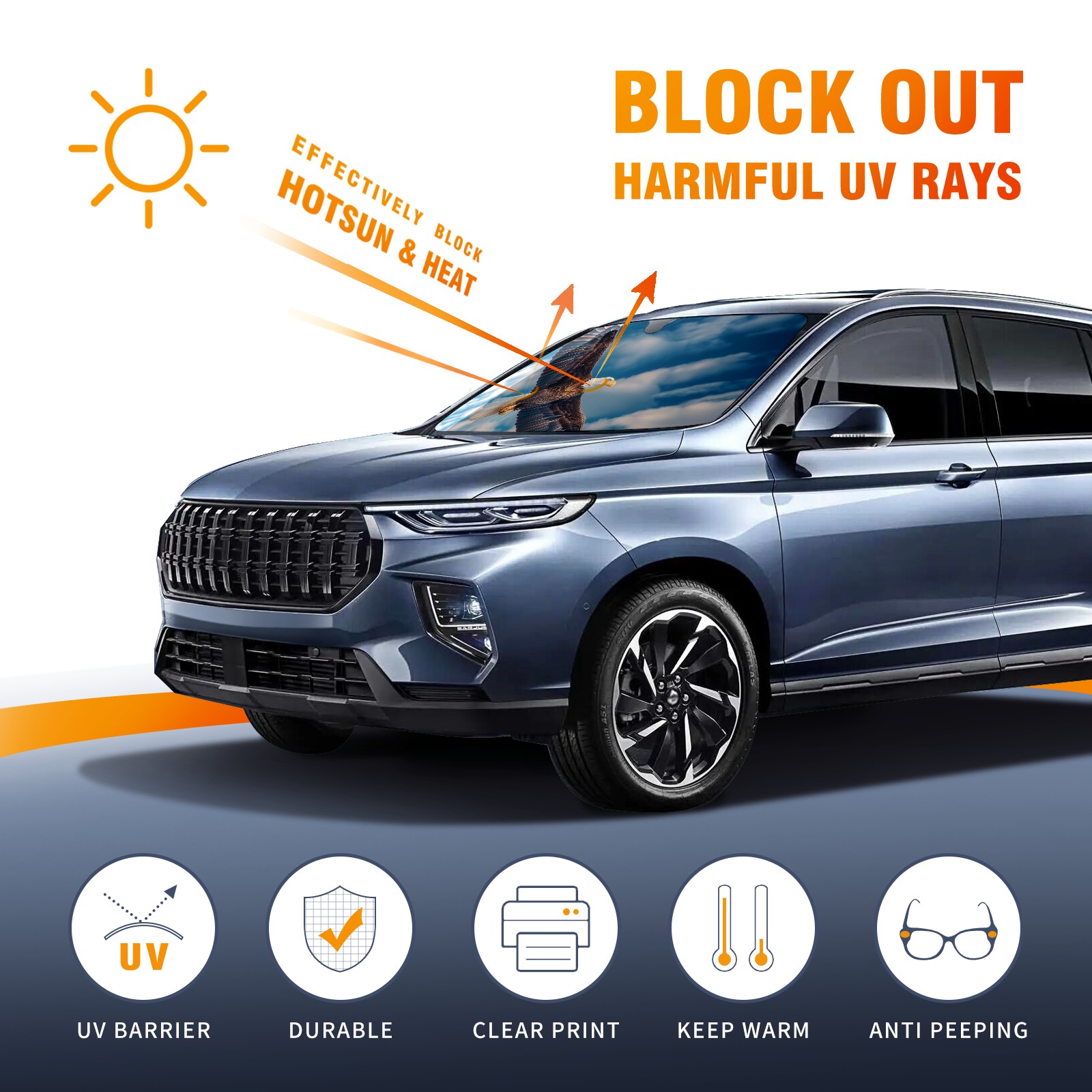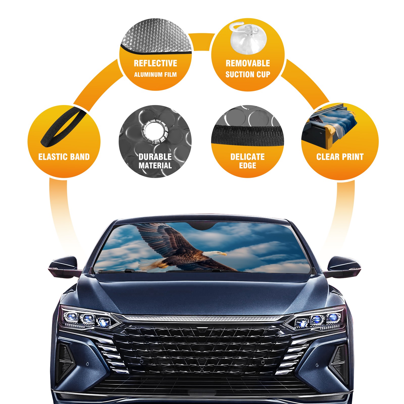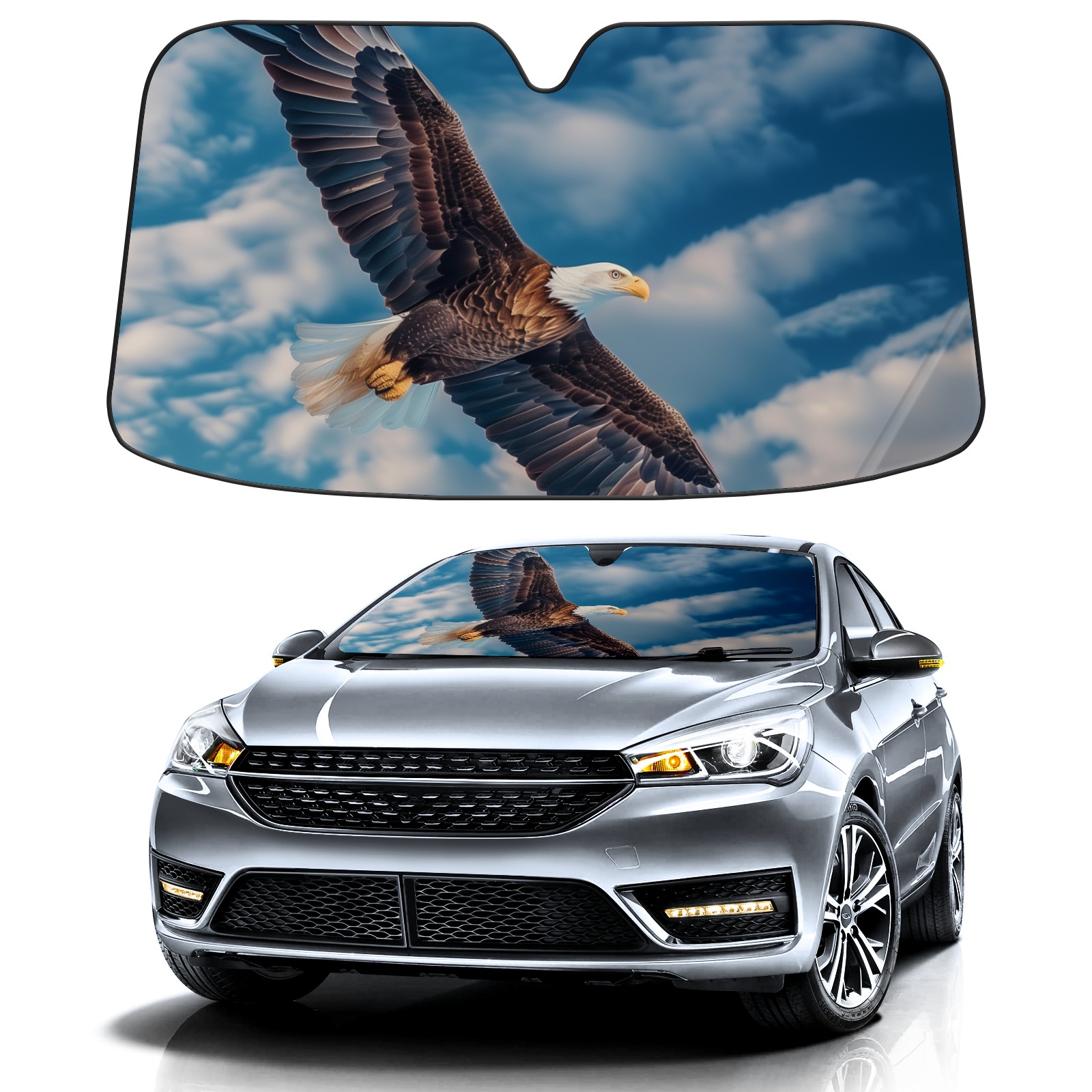 Car Windshield Sun Shade for Front Window Eagle Sky Foldable Vehicle Windshield Car Sun Visor Covers Automotive Window Protector Car Camping Privacy Sun Blocker
