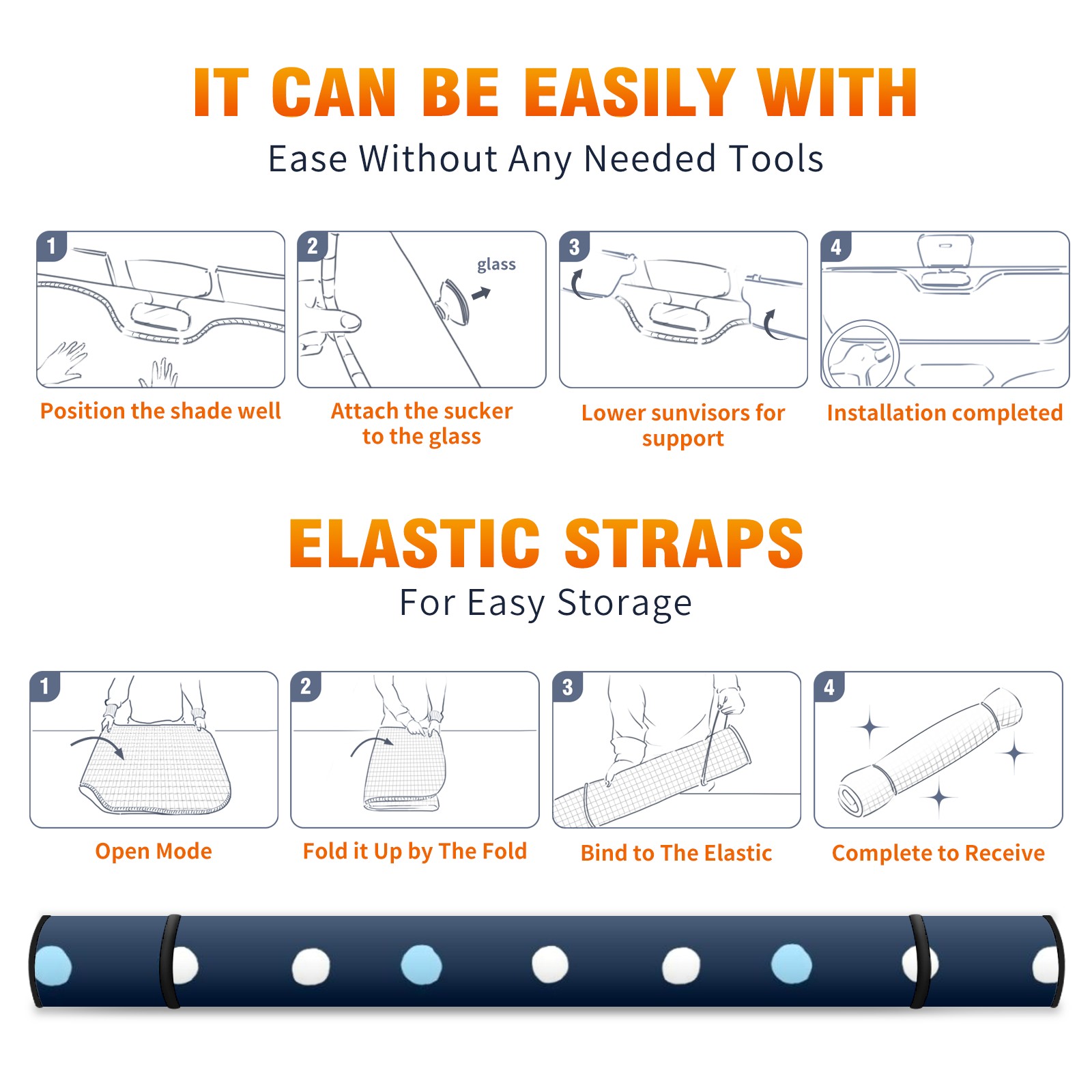 Diameter /Size 63"L x 33.5"W</b><br> Made from excellent materials which makes it sturdy and protects the car from the sun. Easy to use and pack. Makes the interior of the car cooler.You can easily stash the sunshade in the storage bag or store long term.It open and closes easy. Also the leather storage bag is durable and easy to put the umbrella back into.This windshield sunshade provides complete coverage and keeps your car interior cool under direct sun. It is easy to open and position under the windshield and around the rear-view mirror. Makes Your Car Easy To Identify, Perfect For Finding Your Car In Crowded Parking Lots And Garages.Great Choice: It Is A Great Gift For Dad, Boyfriend, Brother, Brother And Uncle, Friends, Classmates, Family And So On.<br> Notice:</b><br> Due To Difference Computer Monitors, The Color Maybe Slightly Different From Picture. As Different Measurement Methods, Measurement Data Will Float Within 2%.I Hope You Understand.<br> If You Have Any Question About The Item Please Do Not Hesitate To Contact Us Immediately And We Will Give You A Satisfactory Reply Within 24 Hours.