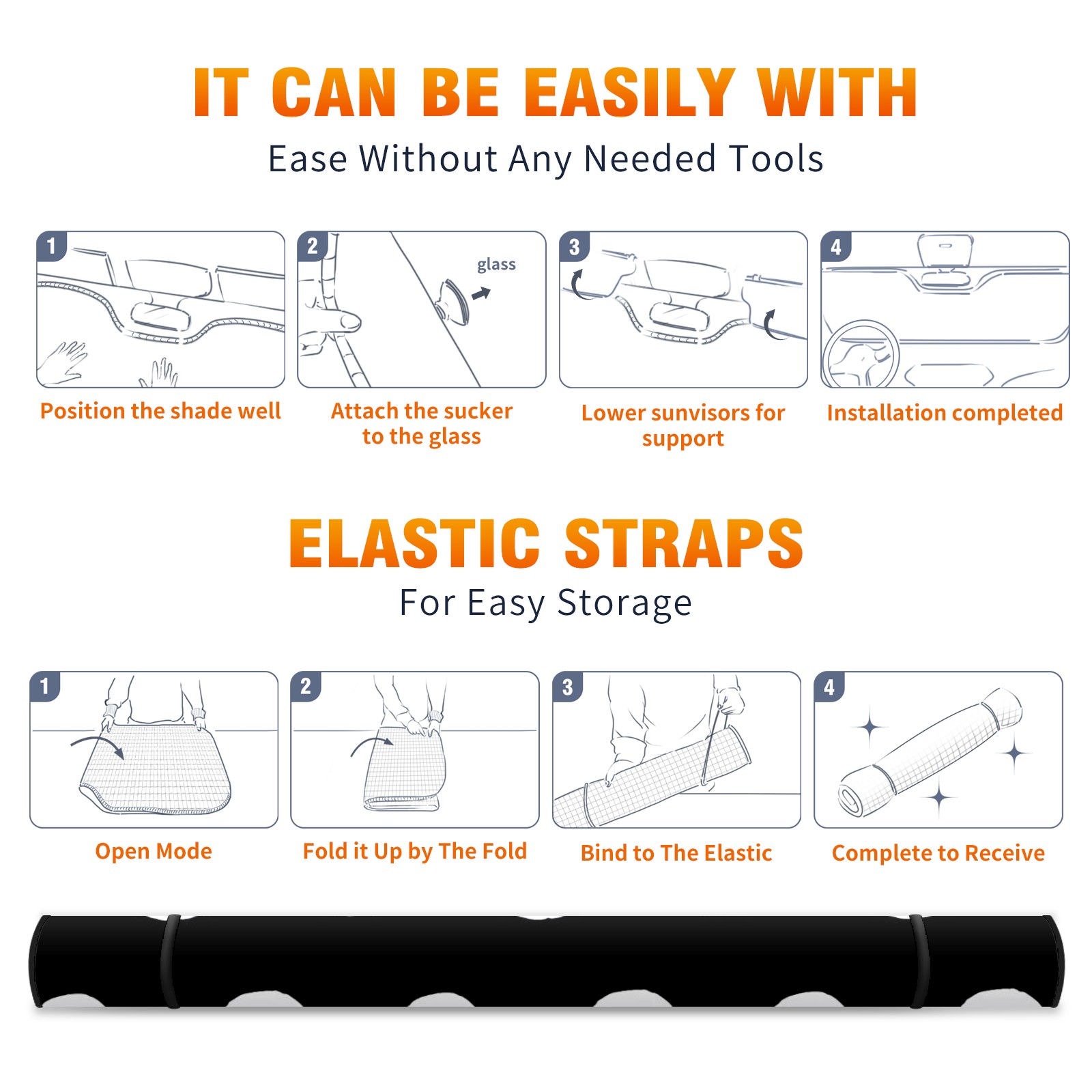 Diameter /Size 63"L x 33.5"W</b><br> Made from excellent materials which makes it sturdy and protects the car from the sun. Easy to use and pack. Makes the interior of the car cooler.You can easily stash the sunshade in the storage bag or store long term.It open and closes easy. Also the leather storage bag is durable and easy to put the umbrella back into.This windshield sunshade provides complete coverage and keeps your car interior cool under direct sun. It is easy to open and position under the windshield and around the rear-view mirror. Makes Your Car Easy To Identify, Perfect For Finding Your Car In Crowded Parking Lots And Garages.Great Choice: It Is A Great Gift For Dad, Boyfriend, Brother, Brother And Uncle, Friends, Classmates, Family And So On.<br> Notice:</b><br> Due To Difference Computer Monitors, The Color Maybe Slightly Different From Picture. As Different Measurement Methods, Measurement Data Will Float Within 2%.I Hope You Understand.<br> If You Have Any Question About The Item Please Do Not Hesitate To Contact Us Immediately And We Will Give You A Satisfactory Reply Within 24 Hours.