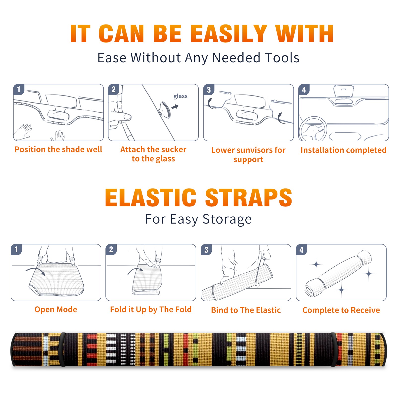 Diameter /Size 63"L x 33.5"W</b><br> Made from excellent materials which makes it sturdy and protects the car from the sun. Easy to use and pack. Makes the interior of the car cooler.You can easily stash the sunshade in the storage bag or store long term.It open and closes easy. Also the leather storage bag is durable and easy to put the umbrella back into.This windshield sunshade provides complete coverage and keeps your car interior cool under direct sun. It is easy to open and position under the windshield and around the rear-view mirror. Makes Your Car Easy To Identify, Perfect For Finding Your Car In Crowded Parking Lots And Garages.Great Choice: It Is A Great Gift For Dad, Boyfriend, Brother, Brother And Uncle, Friends, Classmates, Family And So On.<br> Notice:</b><br> Due To Difference Computer Monitors, The Color Maybe Slightly Different From Picture. As Different Measurement Methods, Measurement Data Will Float Within 2%.I Hope You Understand.<br> If You Have Any Question About The Item Please Do Not Hesitate To Contact Us Immediately And We Will Give You A Satisfactory Reply Within 24 Hours.