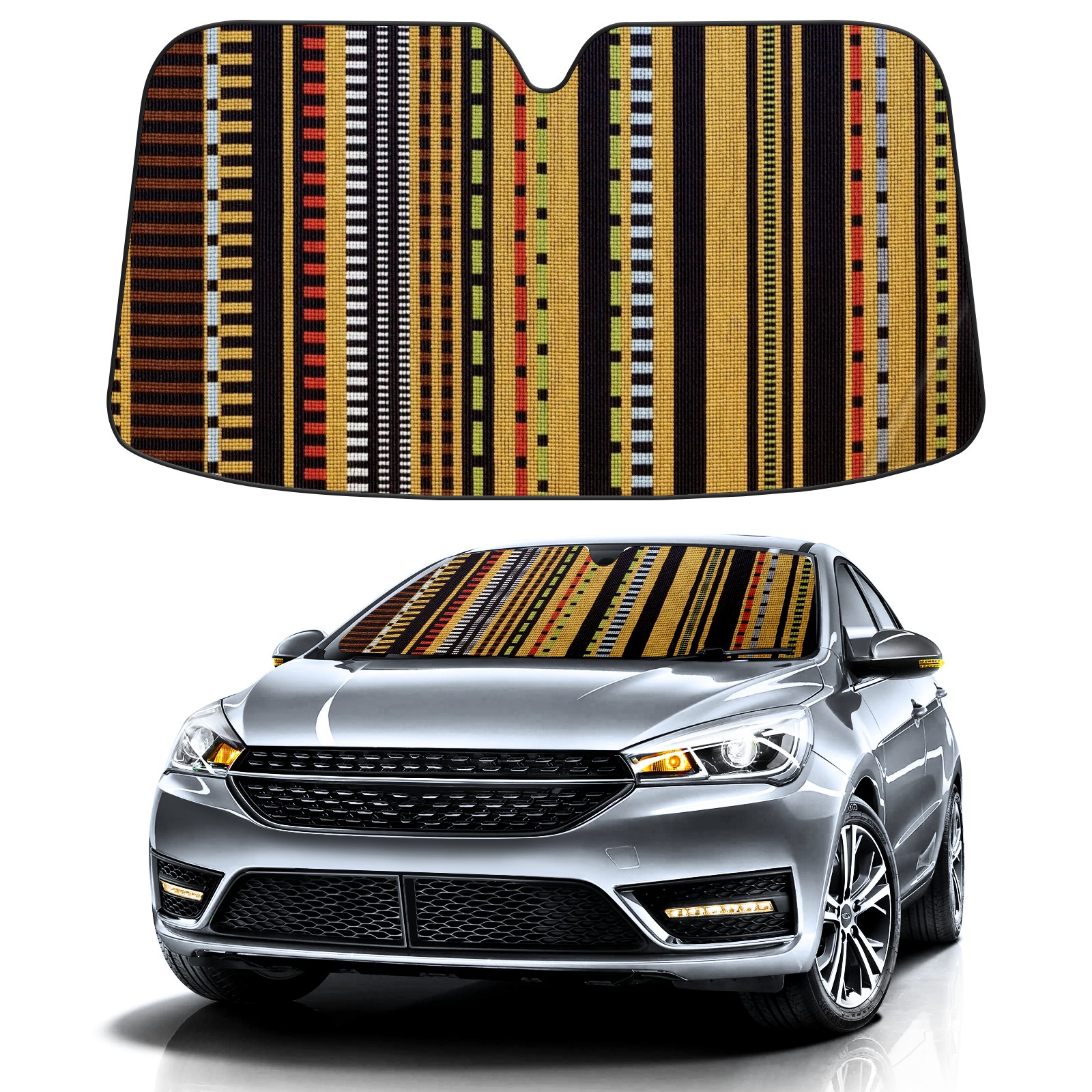 Car Windshield Sun Shade for Front Window Bohemia Lines Foldable Vehicle Windshield Car Sun Visor Covers Automotive Window Protector Car Camping Privacy Sun Blocker