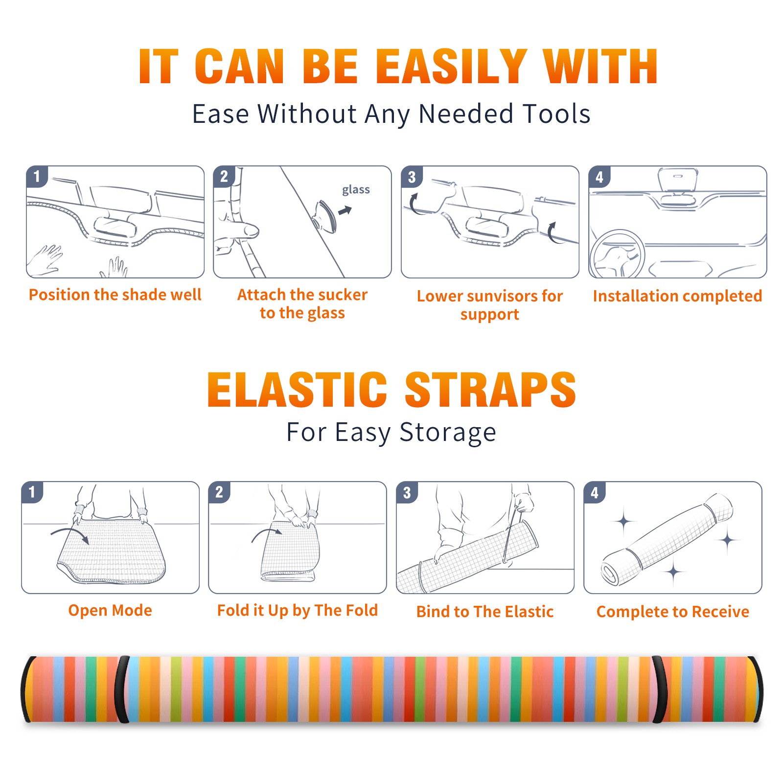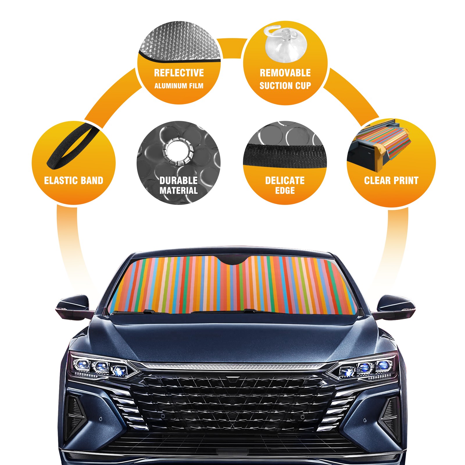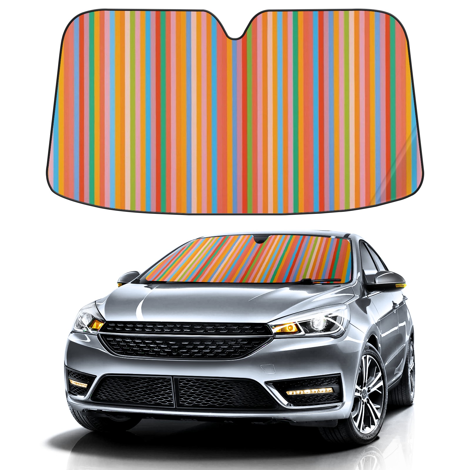 Car Windshield Sun Shade for Front Window Colored Lines Foldable Vehicle Windshield Car Sun Visor Covers Automotive Window Protector Car Camping Privacy Sun Blocker