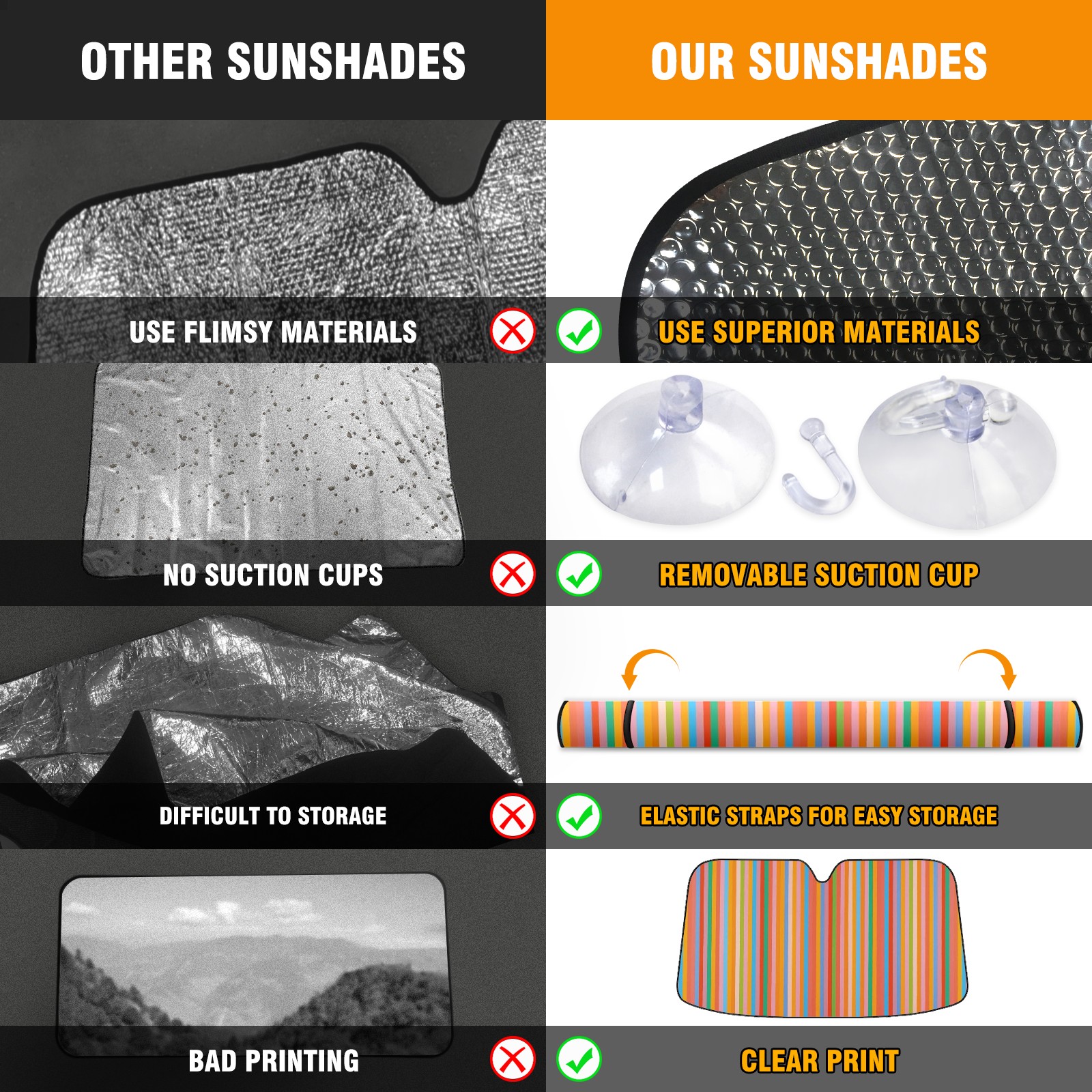 • Diameter /Size 63"L x 33.5"W</b><br> Made from excellent materials which makes it sturdy and protects the car from the sun. Easy to use and pack. Makes the interior of the car cooler.You can easily stash the sunshade in the storage bag or store long term.It open and closes easy. Also the leather storage bag is durable and easy to put the umbrella back into.This windshield sunshade provides complete coverage and keeps your car interior cool under direct sun. It is easy to open and position under the windshield and around the rear-view mirror. Makes Your Car Easy To Identify, Perfect For Finding Your Car In Crowded Parking Lots And Garages.Great Choice: It Is A Great Gift For Dad, Boyfriend, Brother, Brother And Uncle, Friends, Classmates, Family And So On.<br> Notice:</b><br> Due To Difference Computer Monitors, The Color Maybe Slightly Different From Picture. As Different Measurement Methods, Measurement Data Will Float Within 2%.I Hope You Understand.<br> If You Have Any Question About The Item Please Do Not Hesitate To Contact Us Immediately And We Will Give You A Satisfactory Reply Within 24 Hours.