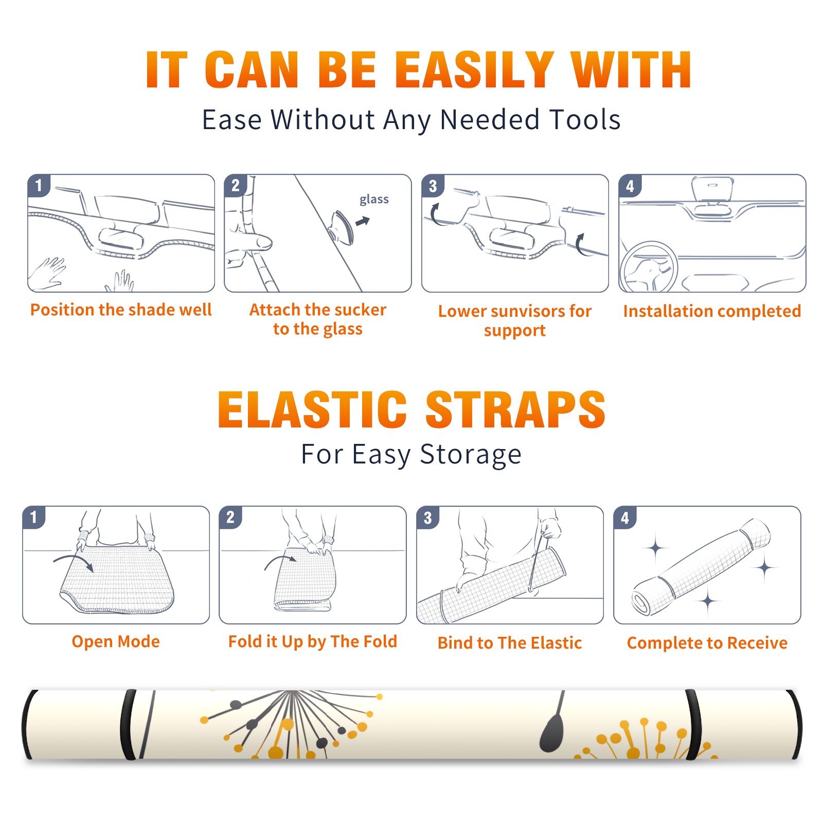 Diameter /Size 63"L x 33.5"W</b><br> Made from excellent materials which makes it sturdy and protects the car from the sun. Easy to use and pack. Makes the interior of the car cooler.You can easily stash the sunshade in the storage bag or store long term.It open and closes easy. Also the leather storage bag is durable and easy to put the umbrella back into.This windshield sunshade provides complete coverage and keeps your car interior cool under direct sun. It is easy to open and position under the windshield and around the rear-view mirror. Makes Your Car Easy To Identify, Perfect For Finding Your Car In Crowded Parking Lots And Garages.Great Choice: It Is A Great Gift For Dad, Boyfriend, Brother, Brother And Uncle, Friends, Classmates, Family And So On.<br> Notice:</b><br> Due To Difference Computer Monitors, The Color Maybe Slightly Different From Picture. As Different Measurement Methods, Measurement Data Will Float Within 2%.I Hope You Understand.<br> If You Have Any Question About The Item Please Do Not Hesitate To Contact Us Immediately And We Will Give You A Satisfactory Reply Within 24 Hours.