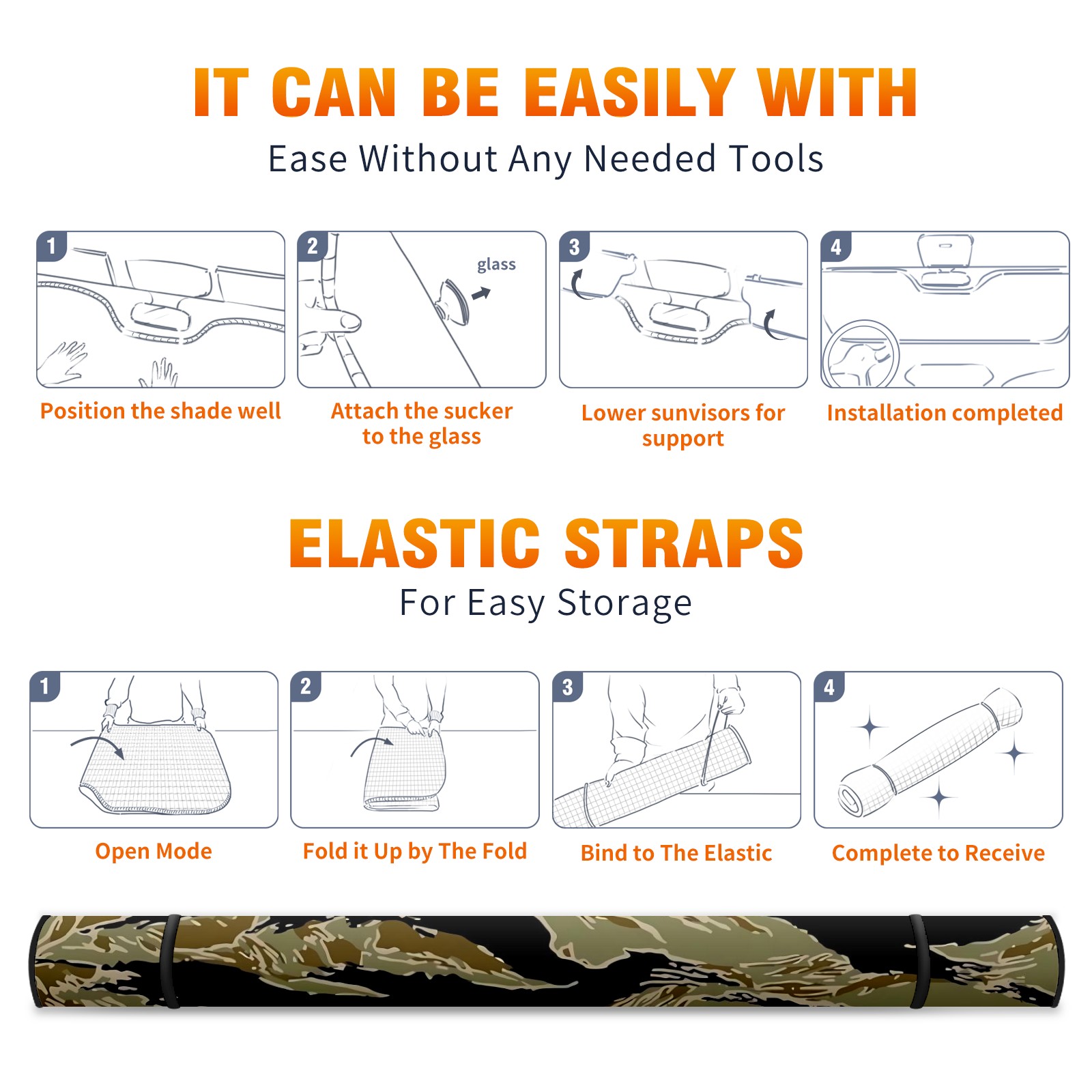 Car Windshield Sun Shade for Front Window Tiger Stripe Camo Foldable Vehicle Windshield Car Sun Visor Covers Automotive Window Protector Car Camping Privacy Sun Blocker