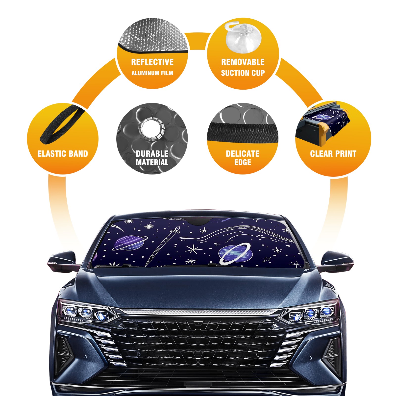 Car Windshield Sun Shade for Front Window DarkBlueSky (1) Foldable Vehicle Windshield Car Sun Visor Covers Automotive Window Protector Car Camping Privacy Sun Blocker