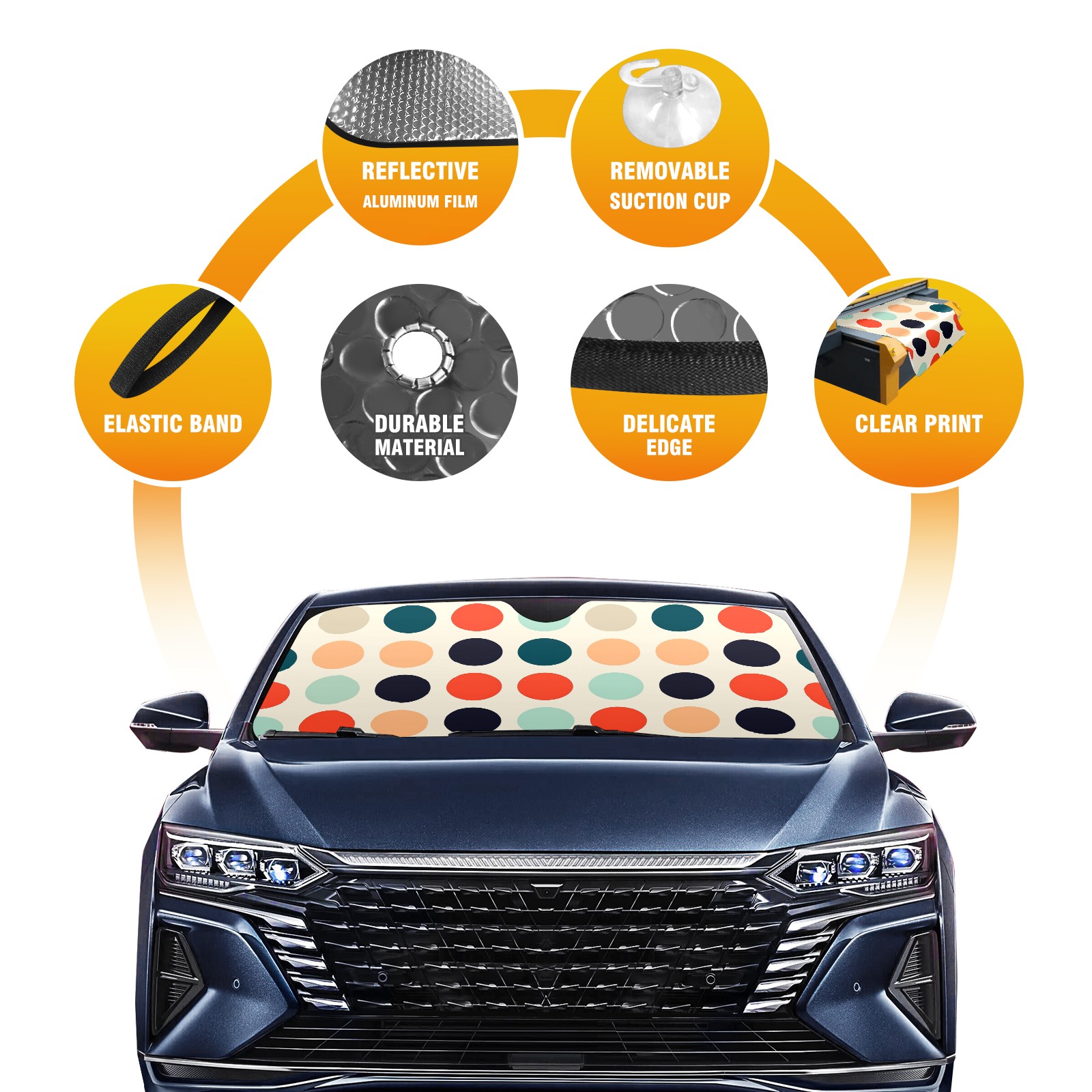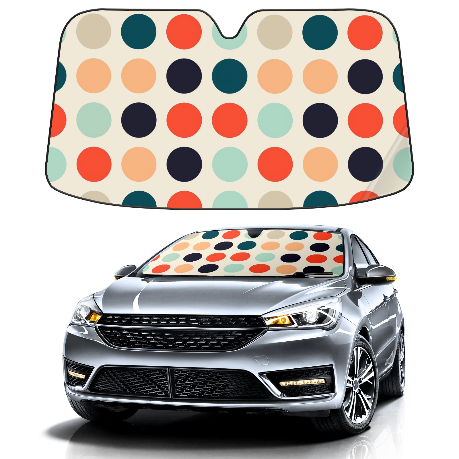 Car Windshield Sun Shade for Front Window Multicolored Dots Foldable Vehicle Windshield Car Sun Visor Covers Automotive Window Protector Car Camping Privacy Sun Blocker