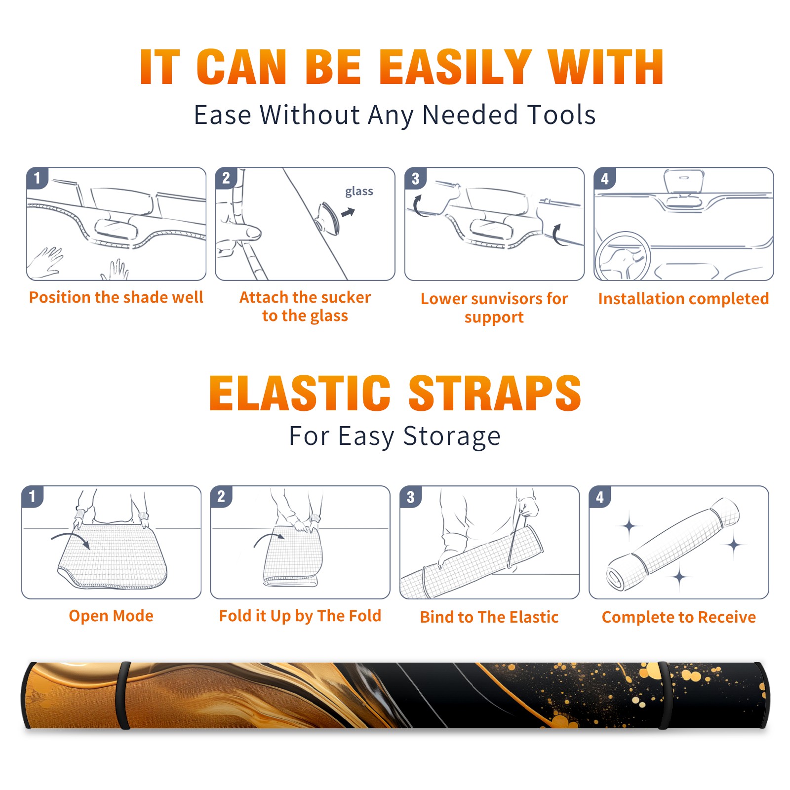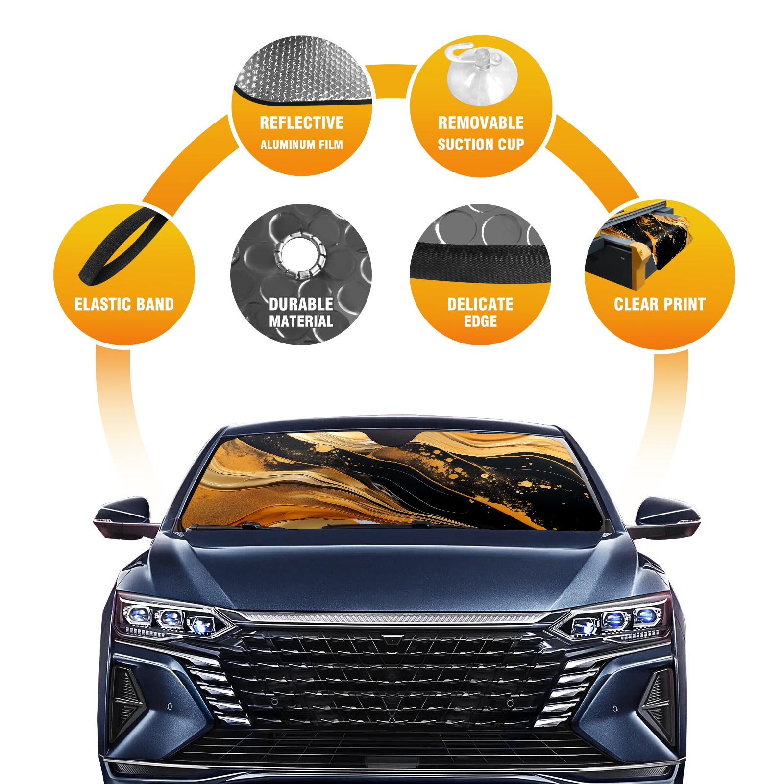 Diameter /Size 63"L x 33.5"W</b><br> Made from excellent materials which makes it sturdy and protects the car from the sun. Easy to use and pack. Makes the interior of the car cooler.You can easily stash the sunshade in the storage bag or store long term.It open and closes easy. Also the leather storage bag is durable and easy to put the umbrella back into.This windshield sunshade provides complete coverage and keeps your car interior cool under direct sun. It is easy to open and position under the windshield and around the rear-view mirror. Makes Your Car Easy To Identify, Perfect For Finding Your Car In Crowded Parking Lots And Garages.Great Choice: It Is A Great Gift For Dad, Boyfriend, Brother, Brother And Uncle, Friends, Classmates, Family And So On.<br> Notice:</b><br> Due To Difference Computer Monitors, The Color Maybe Slightly Different From Picture. As Different Measurement Methods, Measurement Data Will Float Within 2%.I Hope You Understand.<br> If You Have Any Question About The Item Please Do Not Hesitate To Contact Us Immediately And We Will Give You A Satisfactory Reply Within 24 Hours.