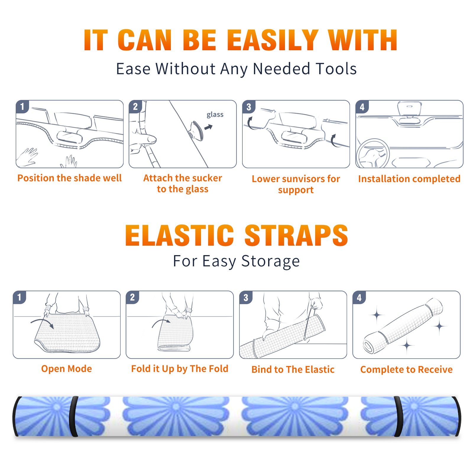 Diameter /Size 63"L x 33.5"W</b><br> Made from excellent materials which makes it sturdy and protects the car from the sun. Easy to use and pack. Makes the interior of the car cooler.You can easily stash the sunshade in the storage bag or store long term.It open and closes easy. Also the leather storage bag is durable and easy to put the umbrella back into.This windshield sunshade provides complete coverage and keeps your car interior cool under direct sun. It is easy to open and position under the windshield and around the rear-view mirror. Makes Your Car Easy To Identify, Perfect For Finding Your Car In Crowded Parking Lots And Garages.Great Choice: It Is A Great Gift For Dad, Boyfriend, Brother, Brother And Uncle, Friends, Classmates, Family And So On.<br> Notice:</b><br> Due To Difference Computer Monitors, The Color Maybe Slightly Different From Picture. As Different Measurement Methods, Measurement Data Will Float Within 2%.I Hope You Understand.<br> If You Have Any Question About The Item Please Do Not Hesitate To Contact Us Immediately And We Will Give You A Satisfactory Reply Within 24 Hours.