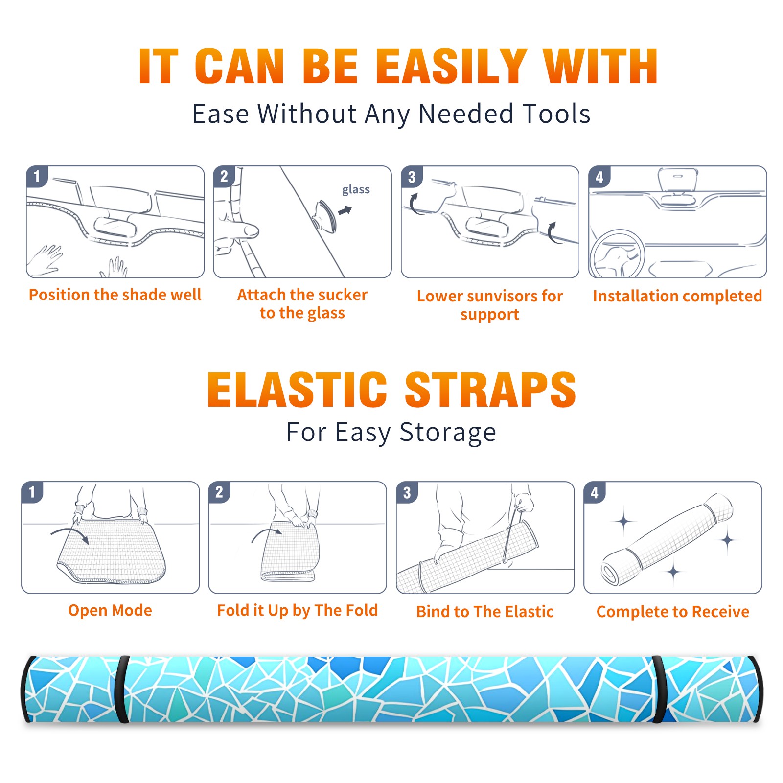 Diameter /Size 63"L x 33.5"W</b><br> Made from excellent materials which makes it sturdy and protects the car from the sun. Easy to use and pack. Makes the interior of the car cooler.You can easily stash the sunshade in the storage bag or store long term.It open and closes easy. Also the leather storage bag is durable and easy to put the umbrella back into.This windshield sunshade provides complete coverage and keeps your car interior cool under direct sun. It is easy to open and position under the windshield and around the rear-view mirror. Makes Your Car Easy To Identify, Perfect For Finding Your Car In Crowded Parking Lots And Garages.Great Choice: It Is A Great Gift For Dad, Boyfriend, Brother, Brother And Uncle, Friends, Classmates, Family And So On.<br> Notice:</b><br> Due To Difference Computer Monitors, The Color Maybe Slightly Different From Picture. As Different Measurement Methods, Measurement Data Will Float Within 2%.I Hope You Understand.<br> If You Have Any Question About The Item Please Do Not Hesitate To Contact Us Immediately And We Will Give You A Satisfactory Reply Within 24 Hours.