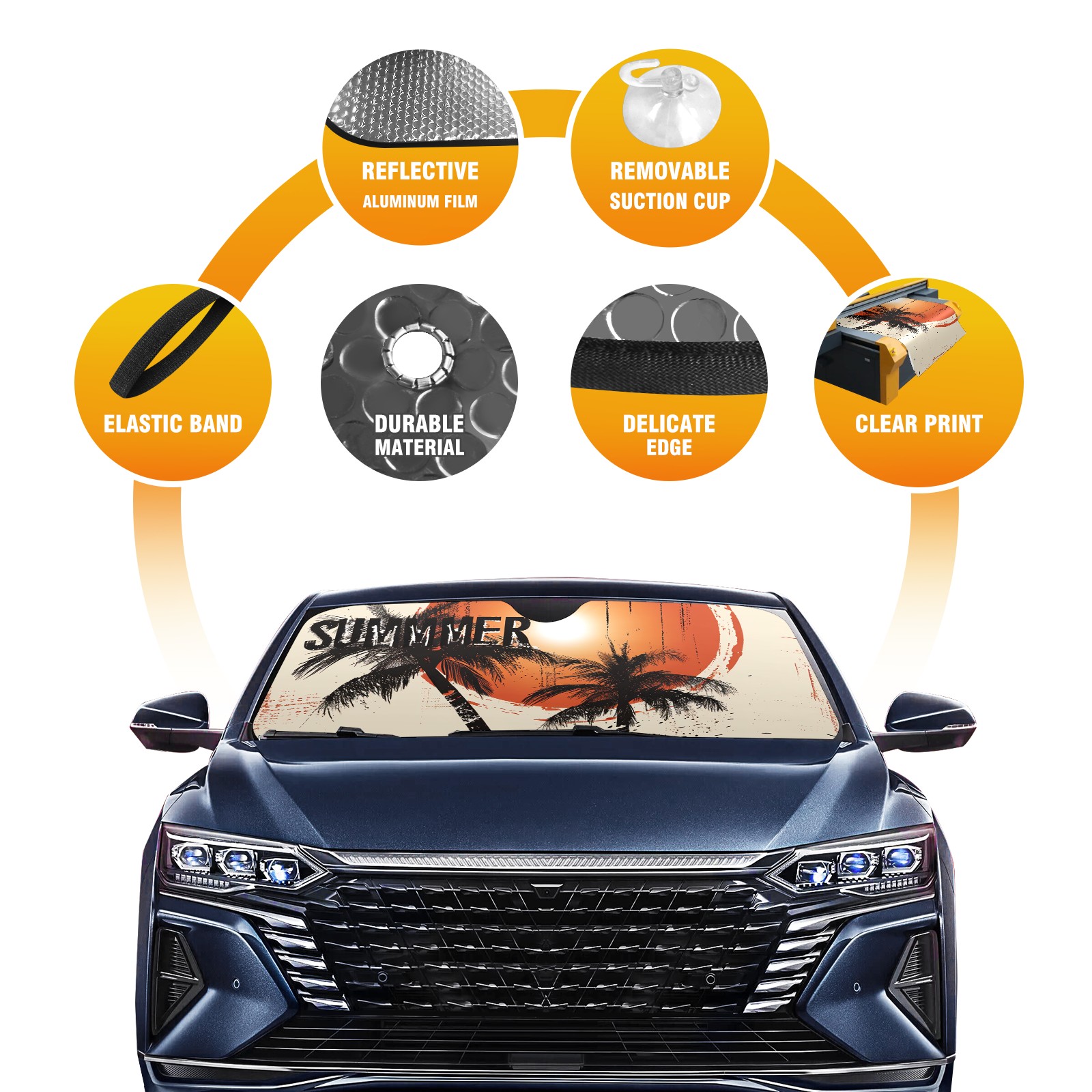 Diameter /Size 63"L x 33.5"W</b><br> Made from excellent materials which makes it sturdy and protects the car from the sun. Easy to use and pack. Makes the interior of the car cooler.You can easily stash the sunshade in the storage bag or store long term.It open and closes easy. Also the leather storage bag is durable and easy to put the umbrella back into.This windshield sunshade provides complete coverage and keeps your car interior cool under direct sun. It is easy to open and position under the windshield and around the rear-view mirror. Makes Your Car Easy To Identify, Perfect For Finding Your Car In Crowded Parking Lots And Garages.Great Choice: It Is A Great Gift For Dad, Boyfriend, Brother, Brother And Uncle, Friends, Classmates, Family And So On.<br> Notice:</b><br> Due To Difference Computer Monitors, The Color Maybe Slightly Different From Picture. As Different Measurement Methods, Measurement Data Will Float Within 2%.I Hope You Understand.<br> If You Have Any Question About The Item Please Do Not Hesitate To Contact Us Immediately And We Will Give You A Satisfactory Reply Within 24 Hours.
