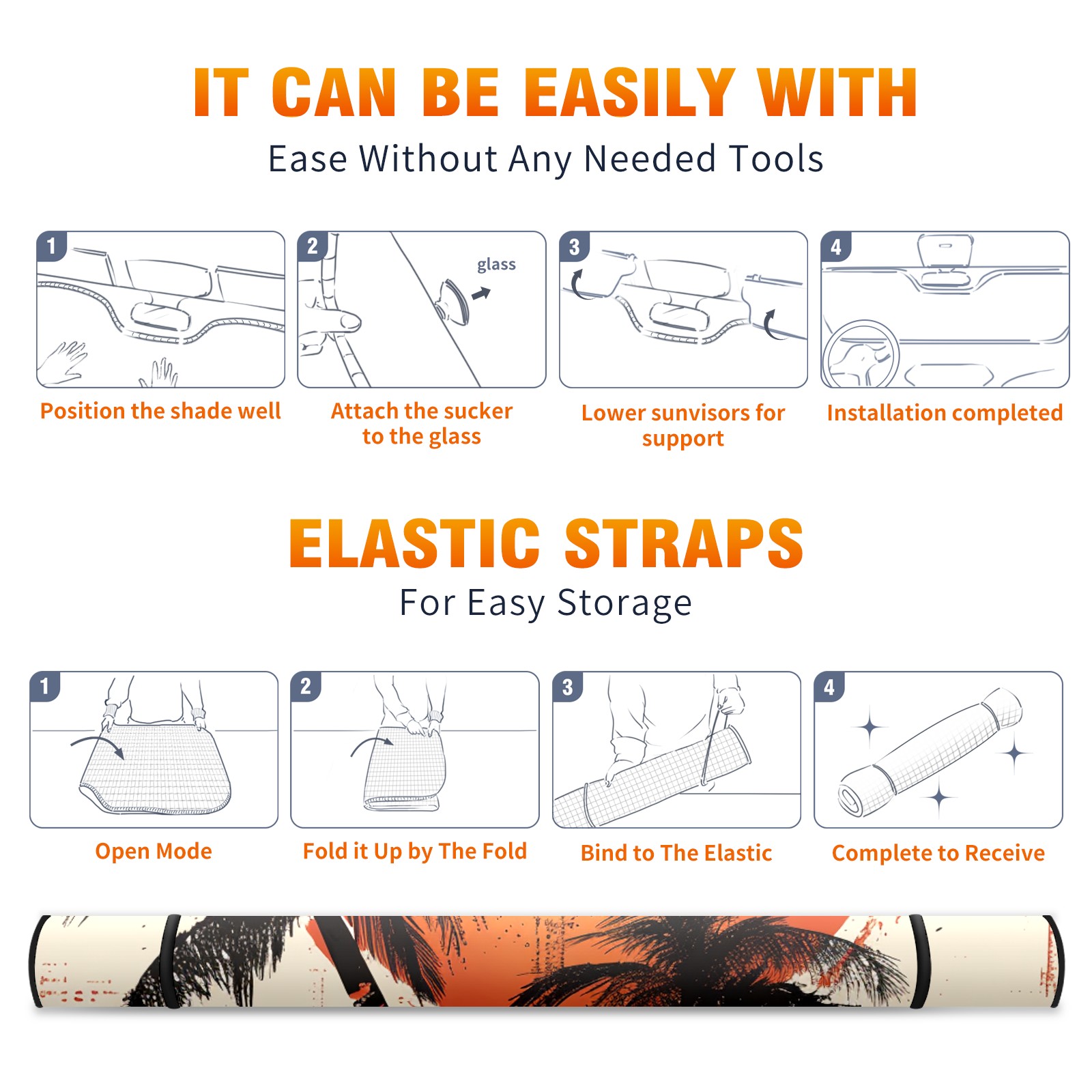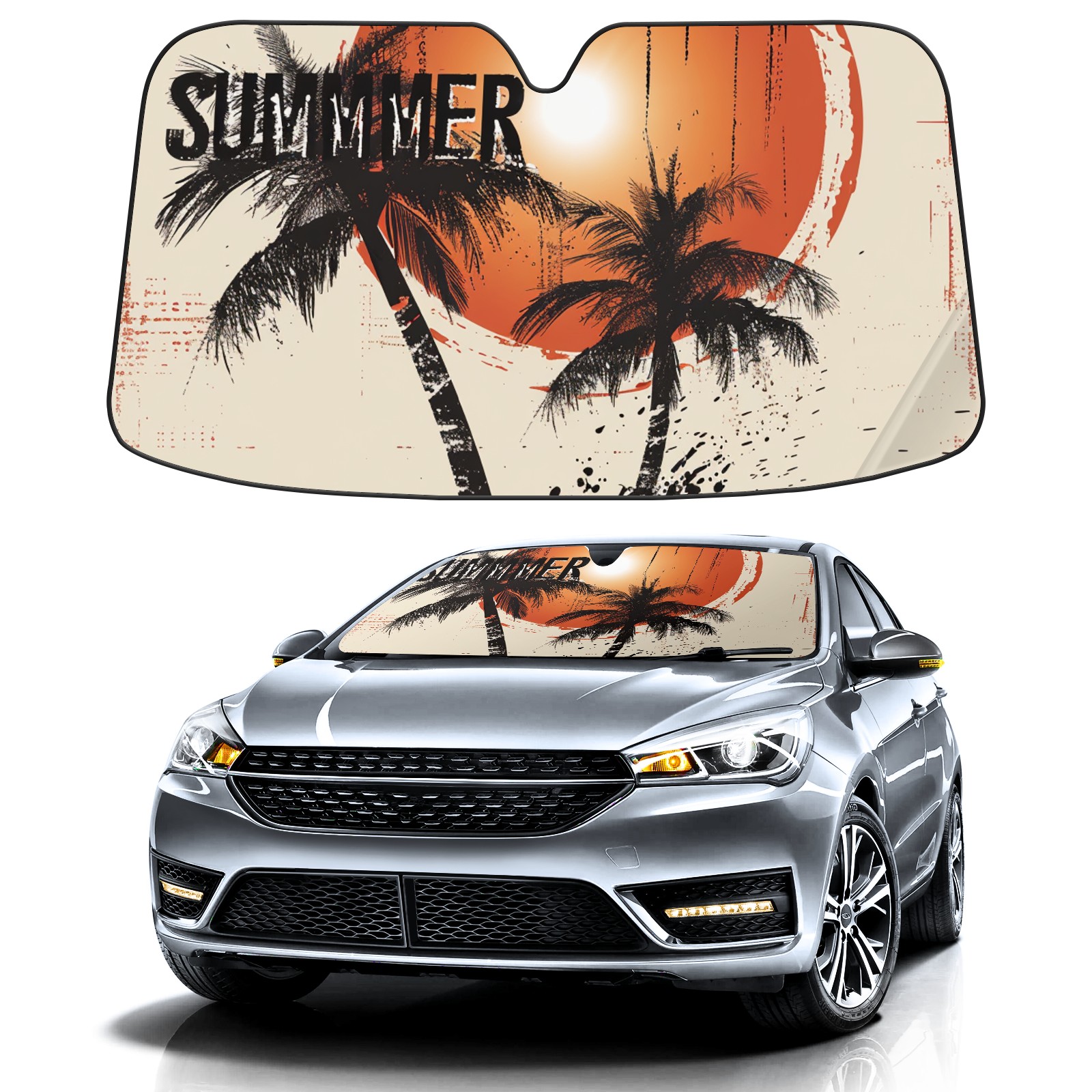 Car Windshield Sun Shade for Front Window Coconut Trees Foldable Vehicle Windshield Car Sun Visor Covers Automotive Window Protector Car Camping Privacy Sun Blocker