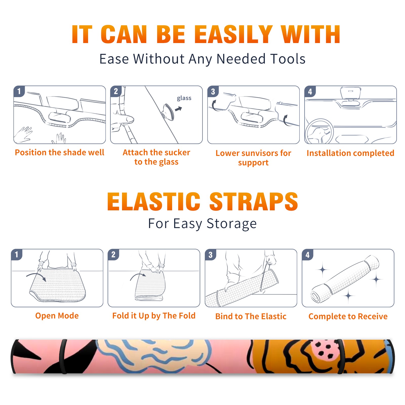 Car Windshield Sun Shade for Front Window Printing Foldable Vehicle Windshield Car Sun Visor Covers Automotive Window Protector Car Camping Privacy Sun Blocker