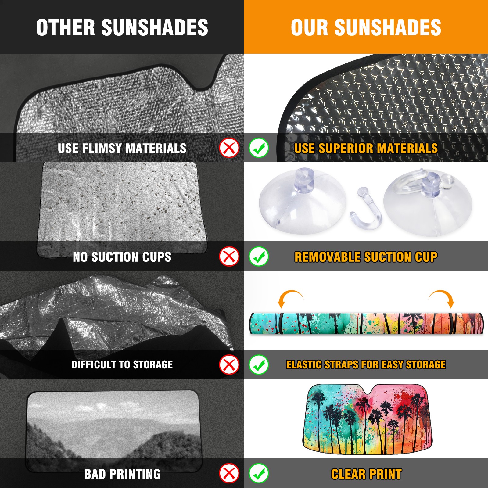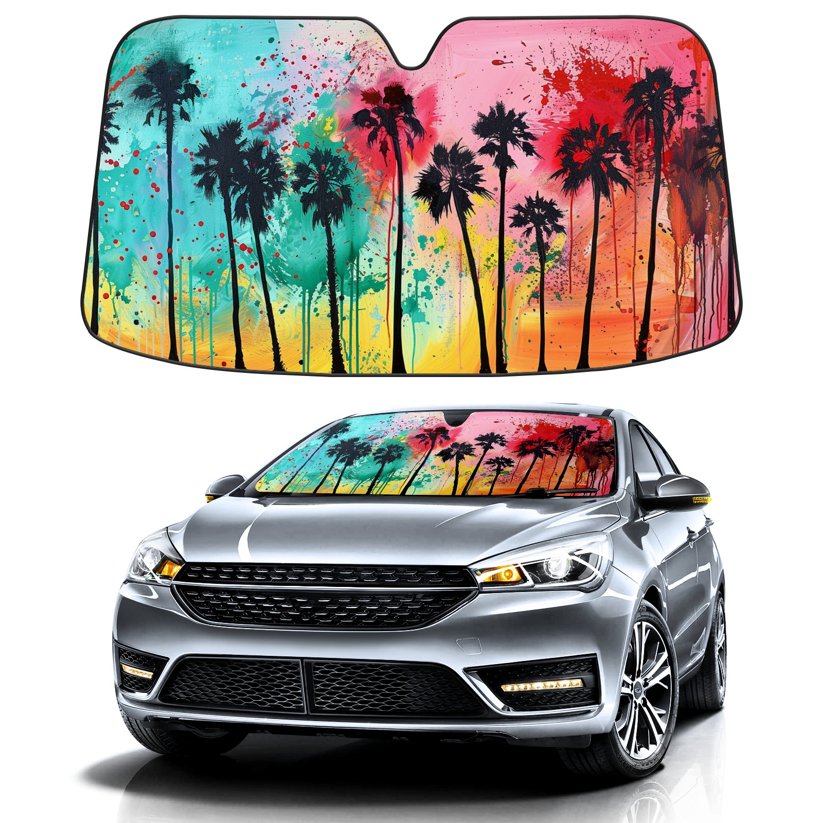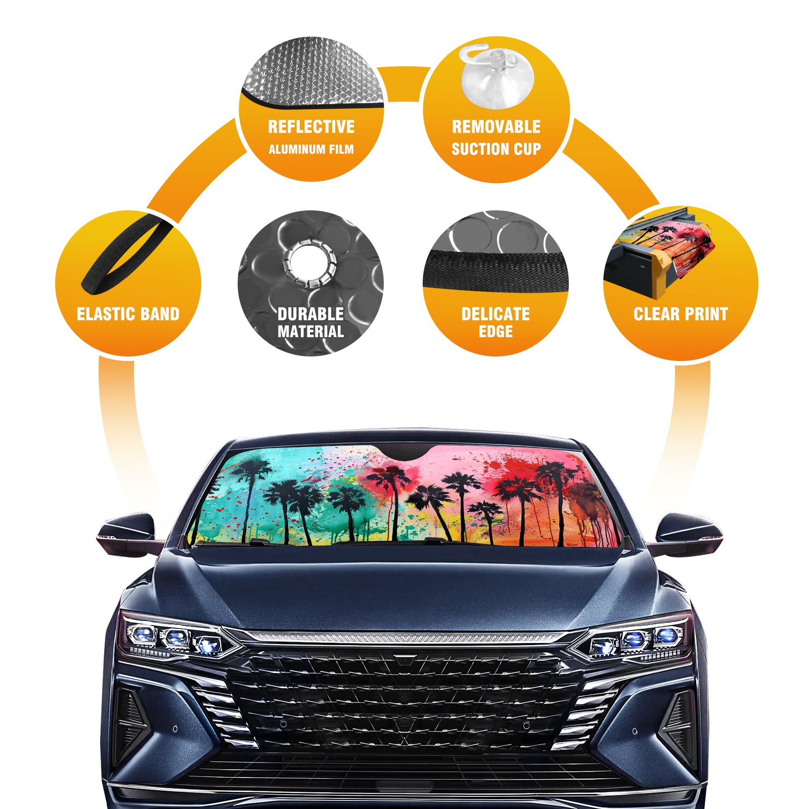 • Diameter /Size 63"L x 33.5"W</b><br> Made from excellent materials which makes it sturdy and protects the car from the sun. Easy to use and pack. Makes the interior of the car cooler.You can easily stash the sunshade in the storage bag or store long term.It open and closes easy. Also the leather storage bag is durable and easy to put the umbrella back into.This windshield sunshade provides complete coverage and keeps your car interior cool under direct sun. It is easy to open and position under the windshield and around the rear-view mirror. Makes Your Car Easy To Identify, Perfect For Finding Your Car In Crowded Parking Lots And Garages.Great Choice: It Is A Great Gift For Dad, Boyfriend, Brother, Brother And Uncle, Friends, Classmates, Family And So On.<br> Notice:</b><br> Due To Difference Computer Monitors, The Color Maybe Slightly Different From Picture. As Different Measurement Methods, Measurement Data Will Float Within 2%.I Hope You Understand.<br> If You Have Any Question About The Item Please Do Not Hesitate To Contact Us Immediately And We Will Give You A Satisfactory Reply Within 24 Hours.