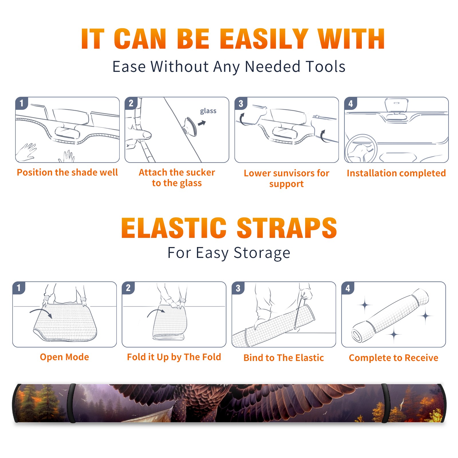 Car Windshield Sun Shade for Front Window Eagle Foldable Vehicle Windshield Car Sun Visor Covers Automotive Window Protector Car Camping Privacy Sun Blocker